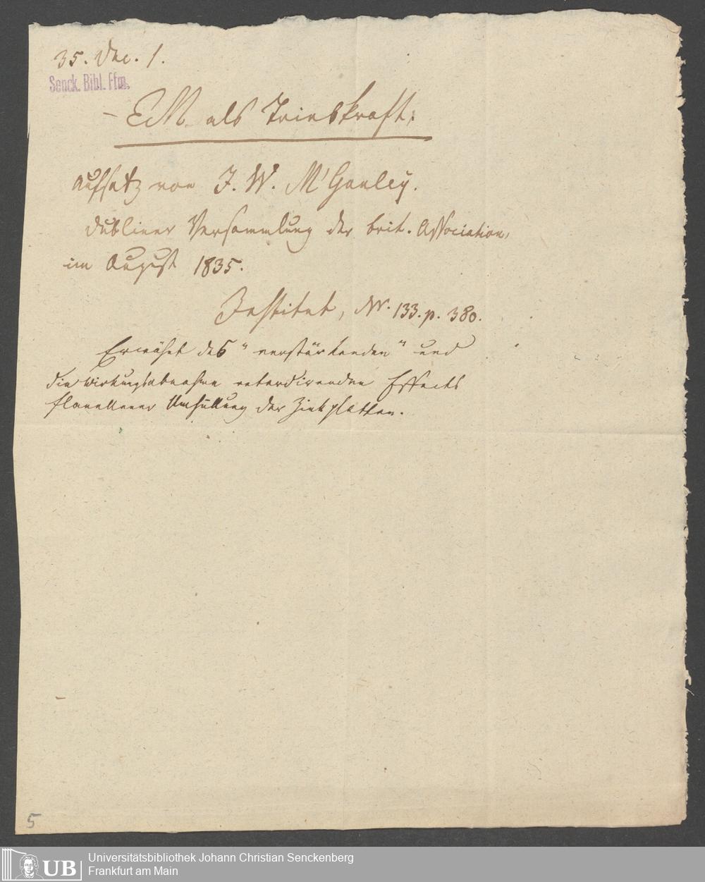 Na 83 Nachlass Christian Ernst Neeff, 21 - Aufzeichnungen zu Elektromagnetismus als Triebkraft