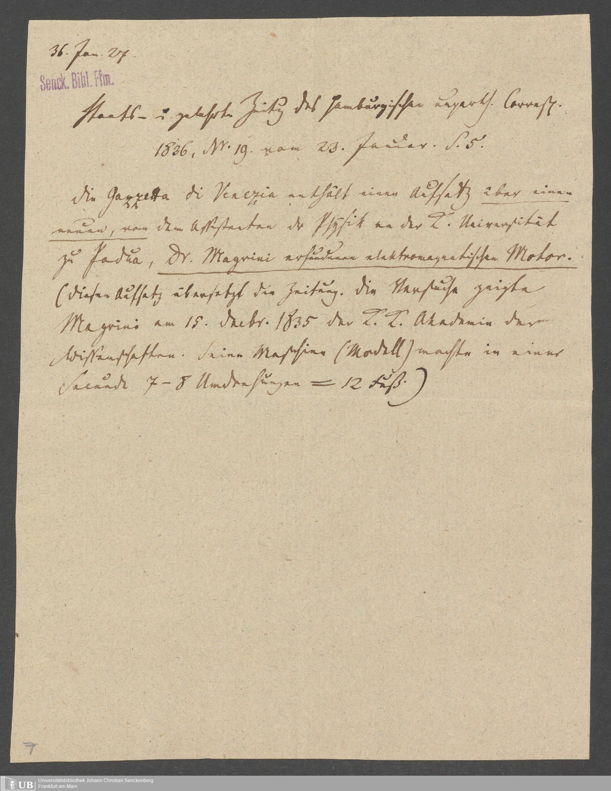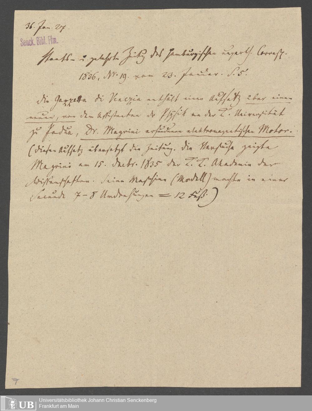 Na 83 Nachlass Christian Ernst Neeff, 21 - Aufzeichnungen zu Elektromagnetismus als Triebkraft