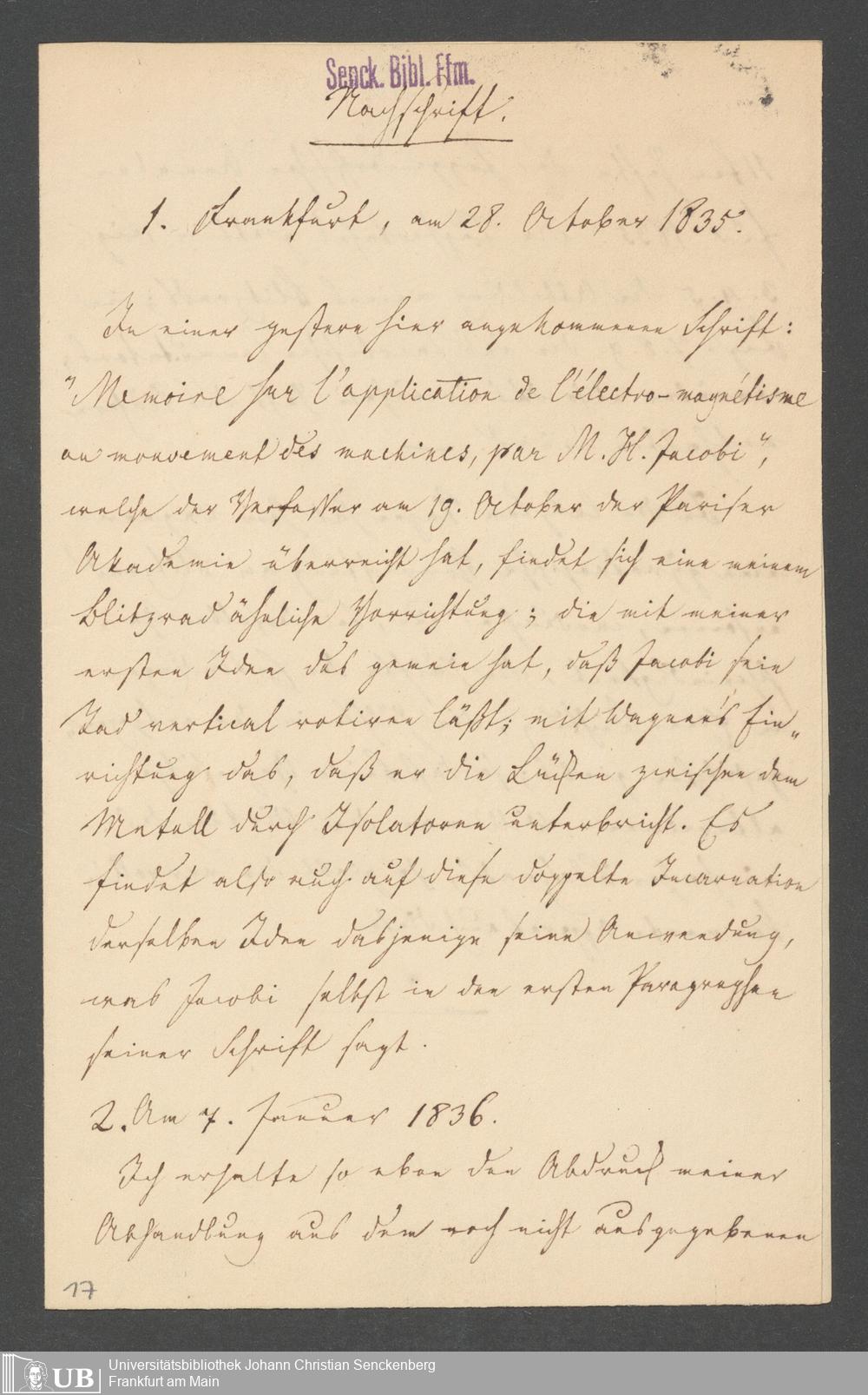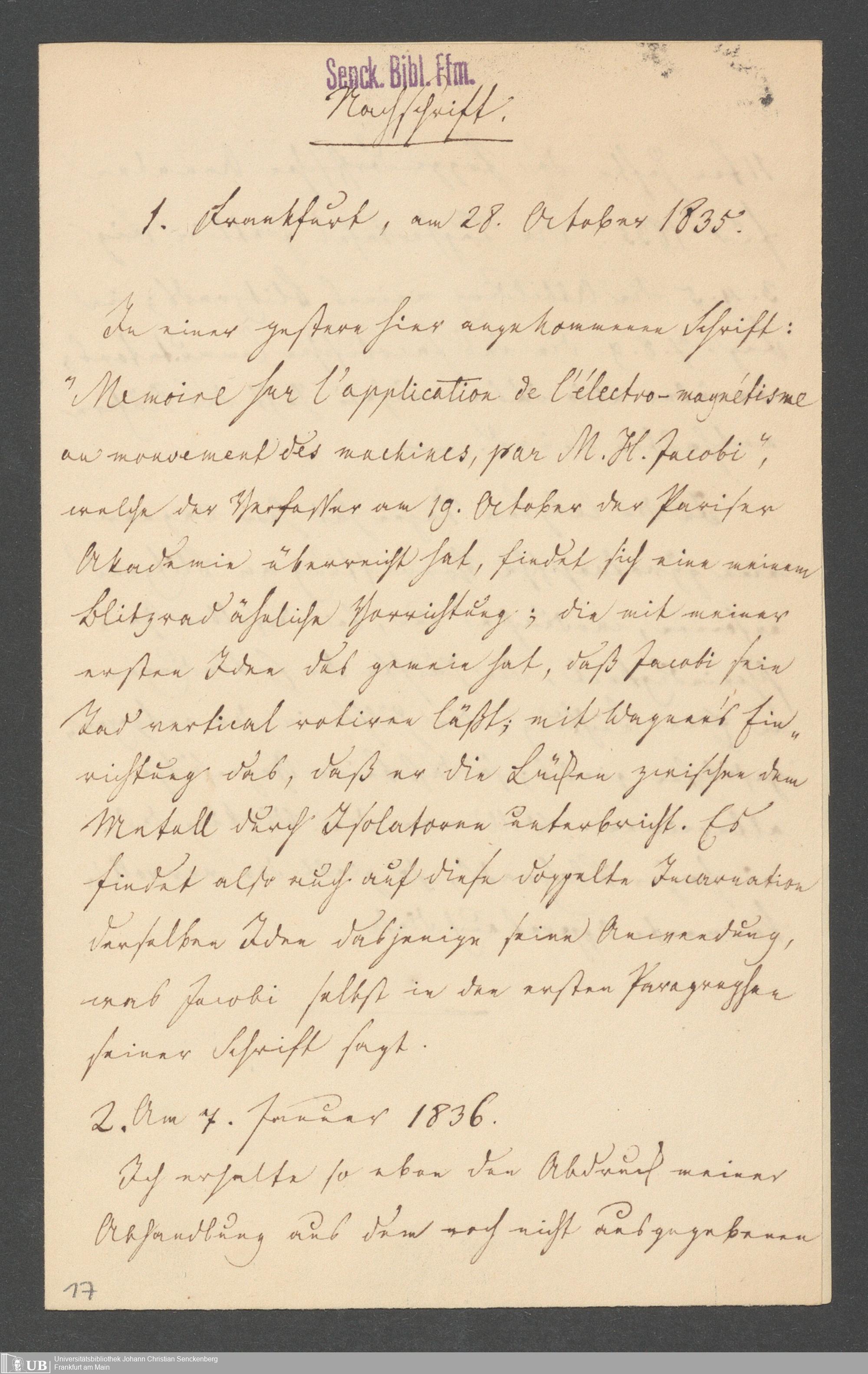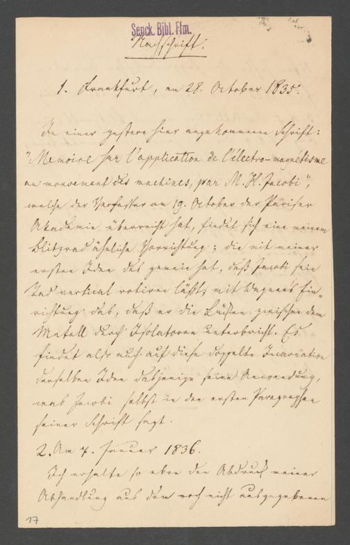 Na 83 Nachlass Christian Ernst Neeff, 25 - Aufzeichnungen zu Elektromagnetismus und Magnetelektrizität