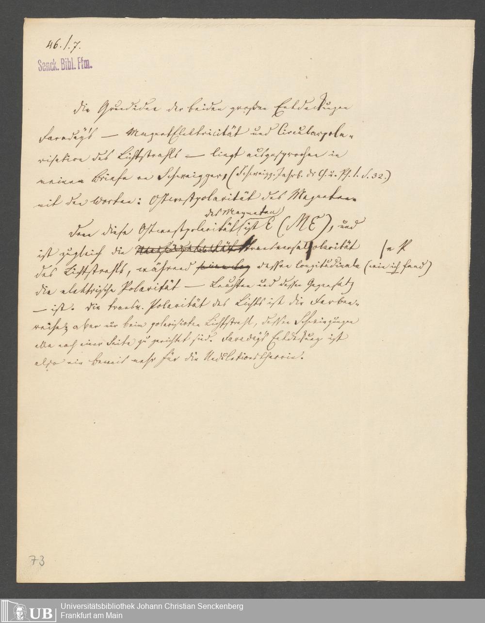 Na 83 Nachlass Christian Ernst Neeff, 25 - Aufzeichnungen zu Elektromagnetismus und Magnetelektrizität