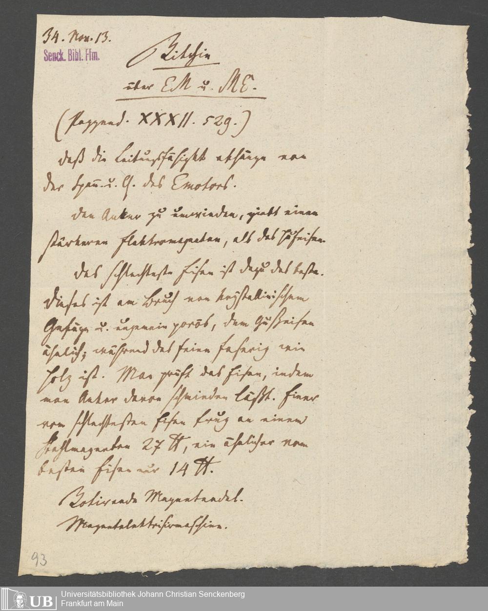 Na 83 Nachlass Christian Ernst Neeff, 25 - Aufzeichnungen zu Elektromagnetismus und Magnetelektrizität