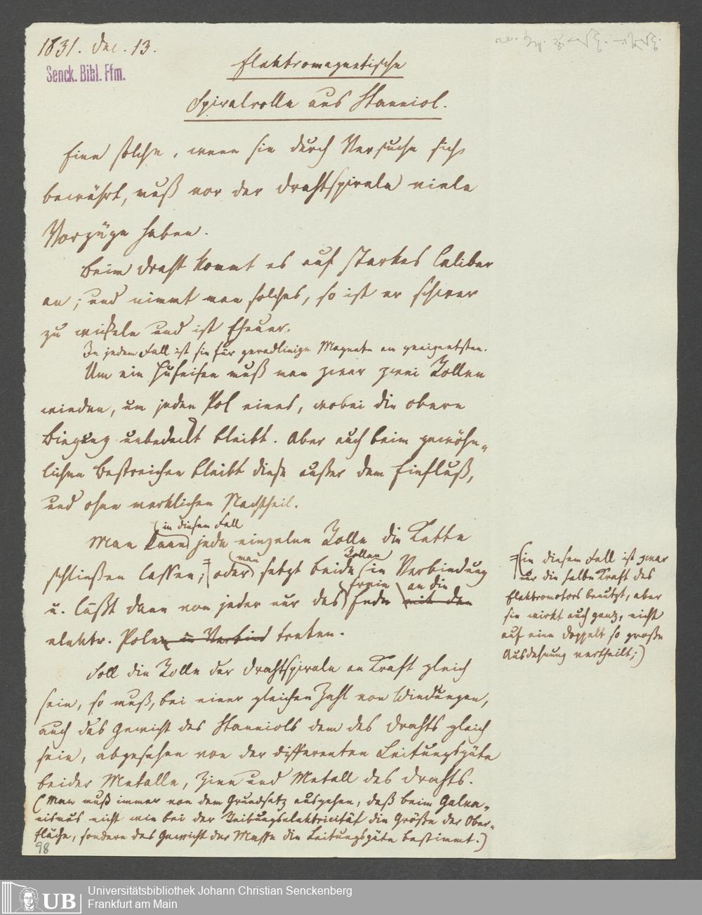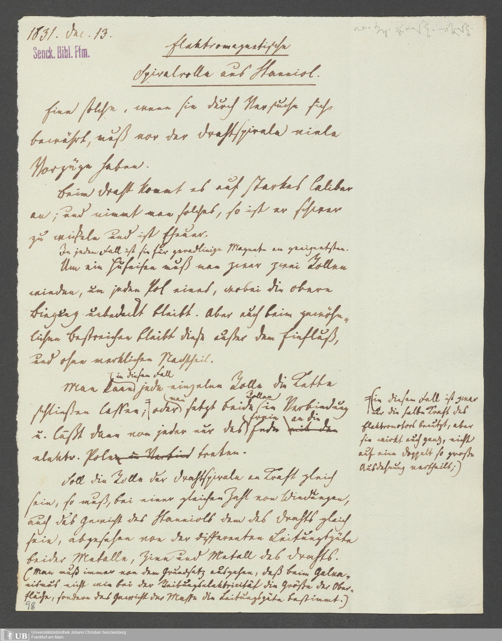 Na 83 Nachlass Christian Ernst Neeff, 25 - Aufzeichnungen zu Elektromagnetismus und Magnetelektrizität