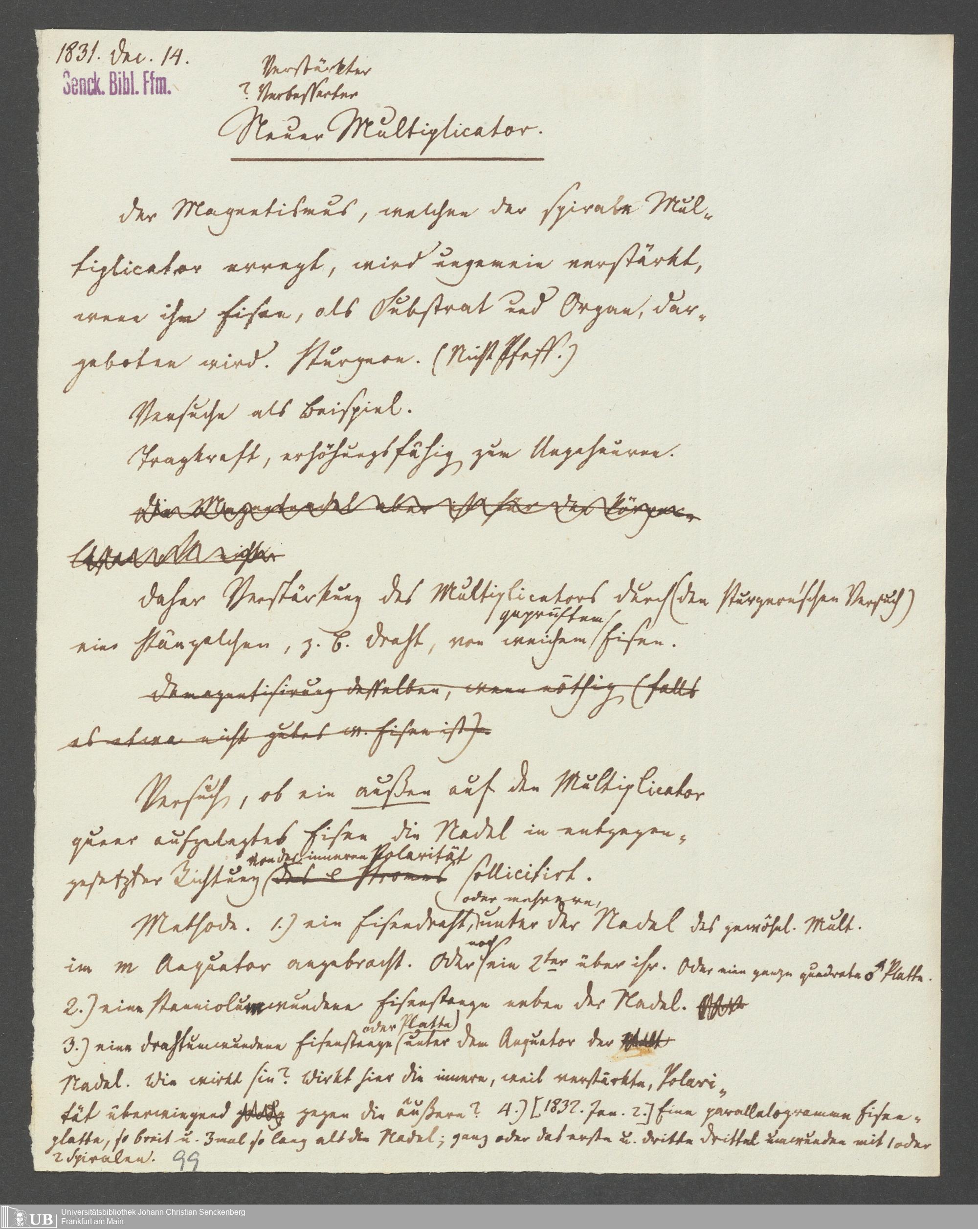 Na 83 Nachlass Christian Ernst Neeff, 25 - Aufzeichnungen zu Elektromagnetismus und Magnetelektrizität