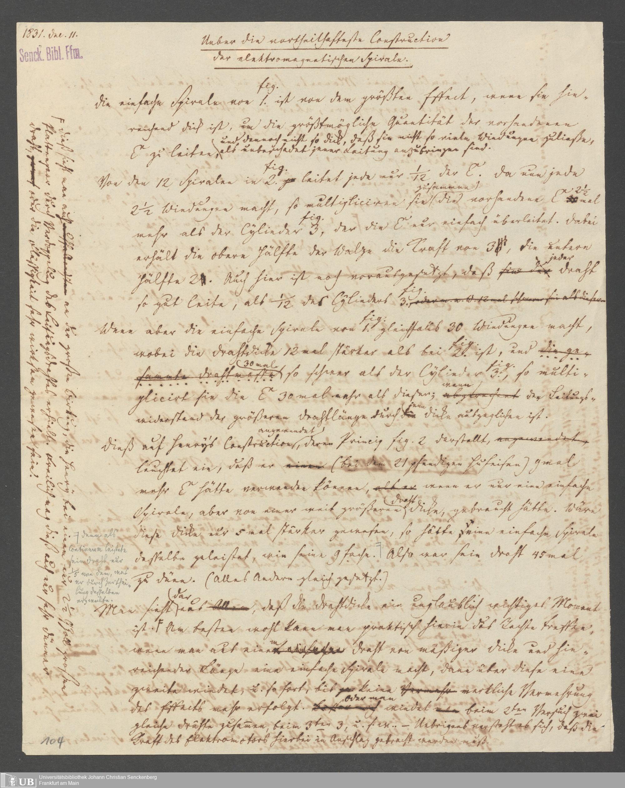 Na 83 Nachlass Christian Ernst Neeff, 25 - Aufzeichnungen zu Elektromagnetismus und Magnetelektrizität