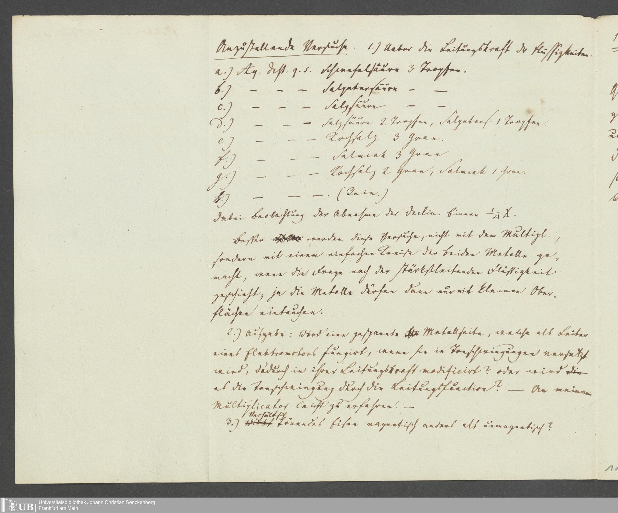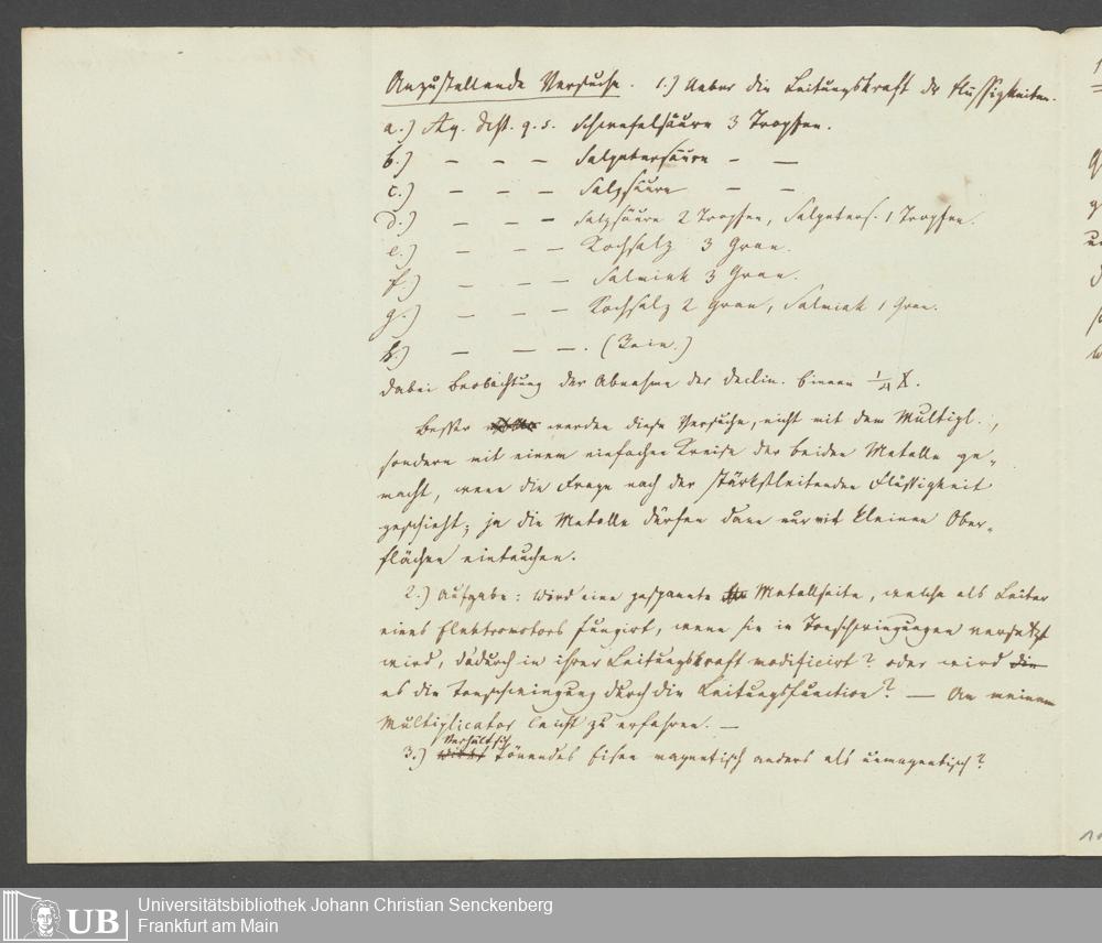 Na 83 Nachlass Christian Ernst Neeff, 25 - Aufzeichnungen zu Elektromagnetismus und Magnetelektrizität
