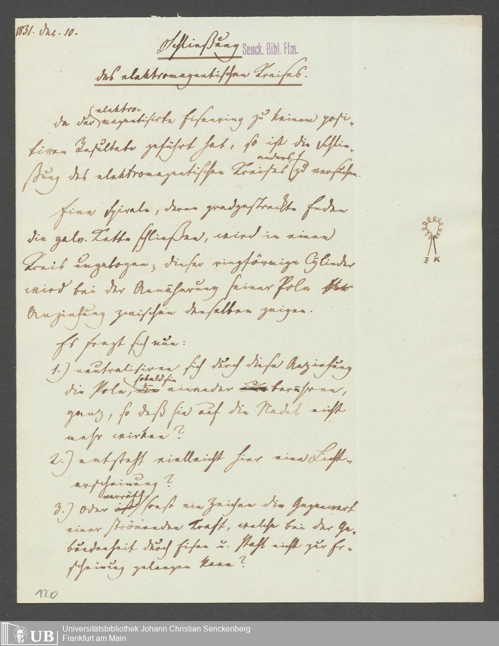 Na 83 Nachlass Christian Ernst Neeff, 25 - Aufzeichnungen zu Elektromagnetismus und Magnetelektrizität