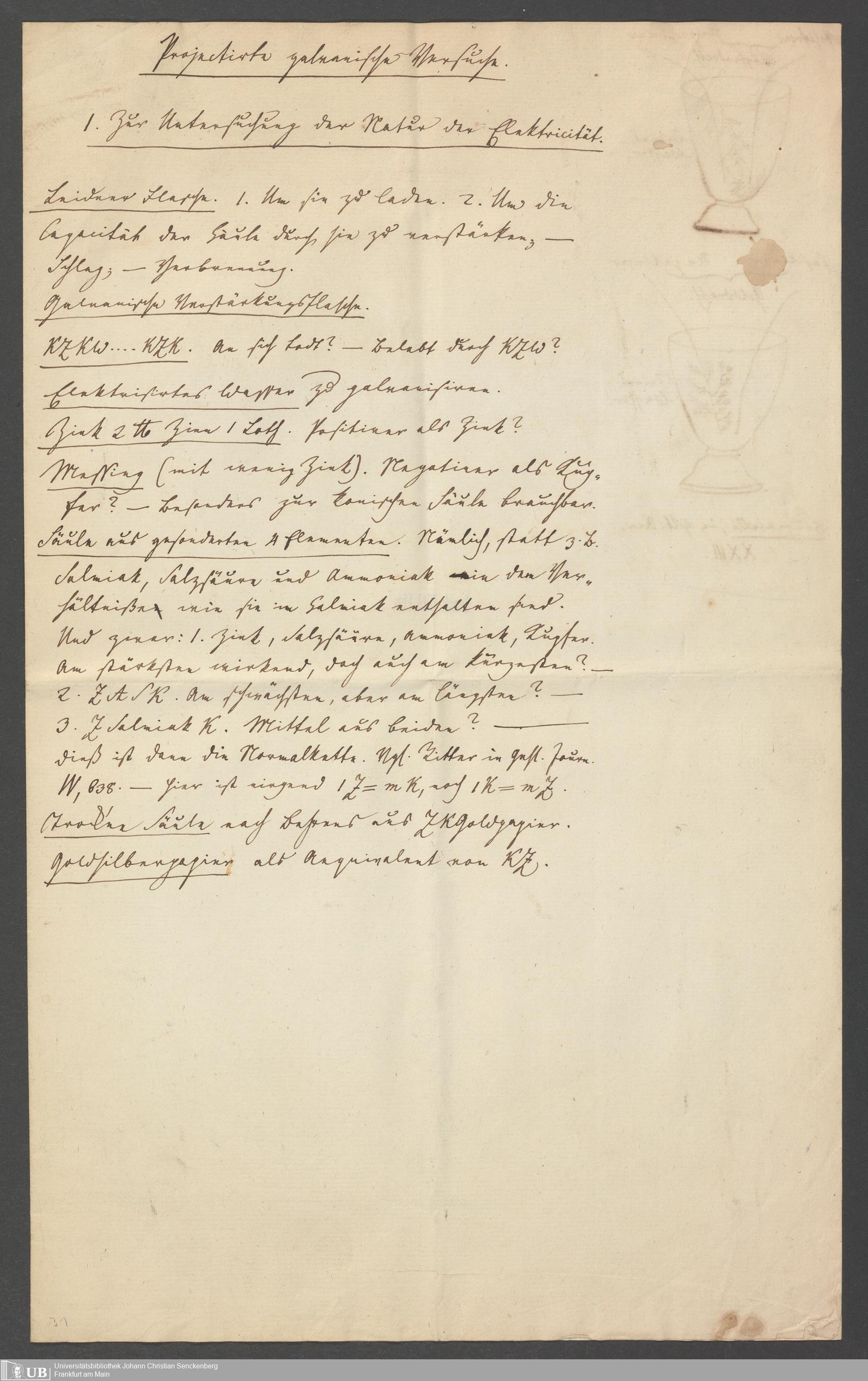 Na 83 Nachlass Christian Ernst Neeff, 27 - Vorlesungen und Versuche über den Galvanismus