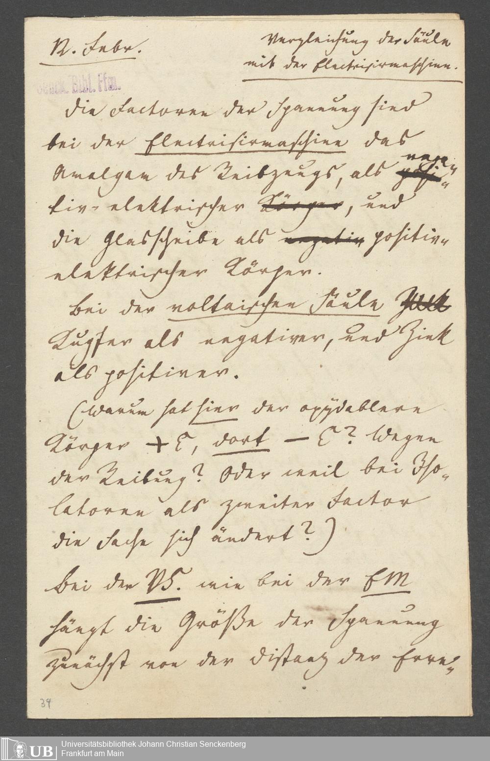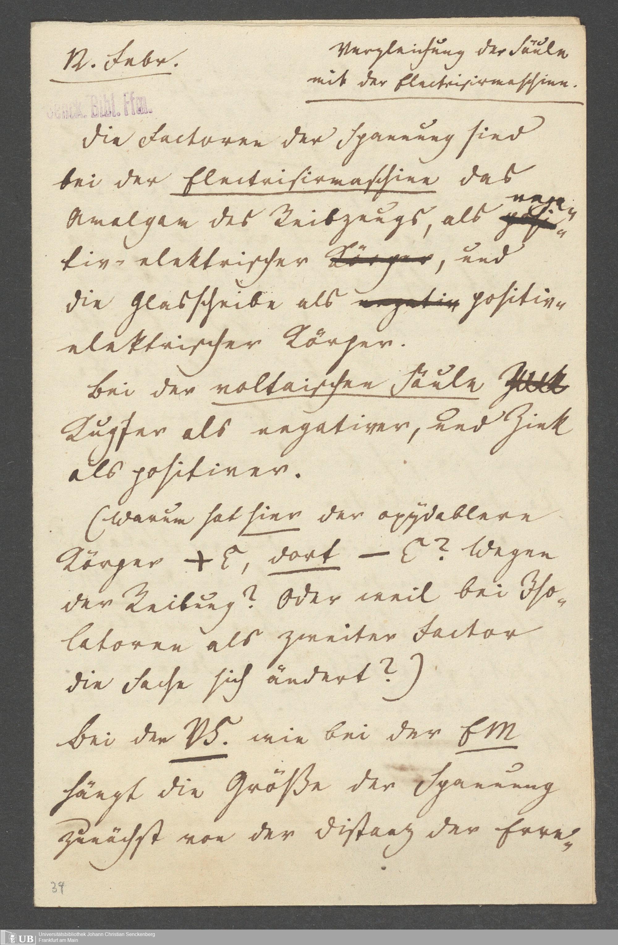 Na 83 Nachlass Christian Ernst Neeff, 27 - Vorlesungen und Versuche über den Galvanismus