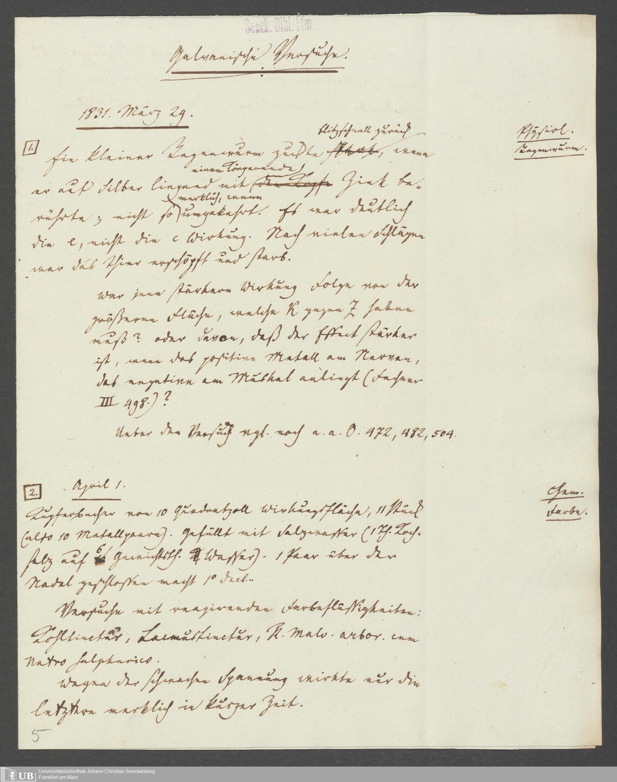 Na 83 Nachlass Christian Ernst Neeff, 28 - Galvanische Versuche