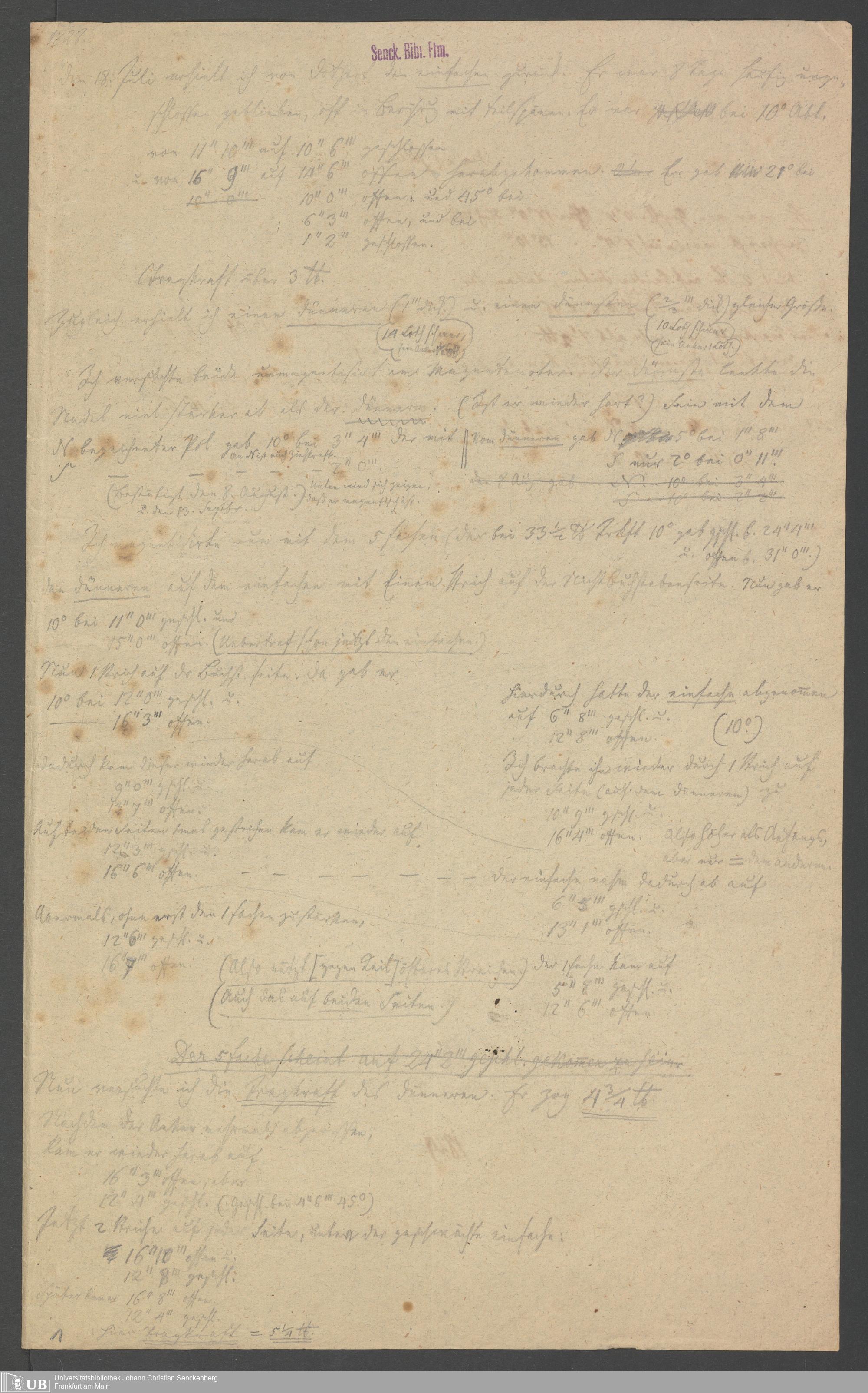 Na 83 Nachlass Christian Ernst Neeff, 43 - Aufzeichnungen, Tabellen und Versuchsergebnisse zum Magnetismus