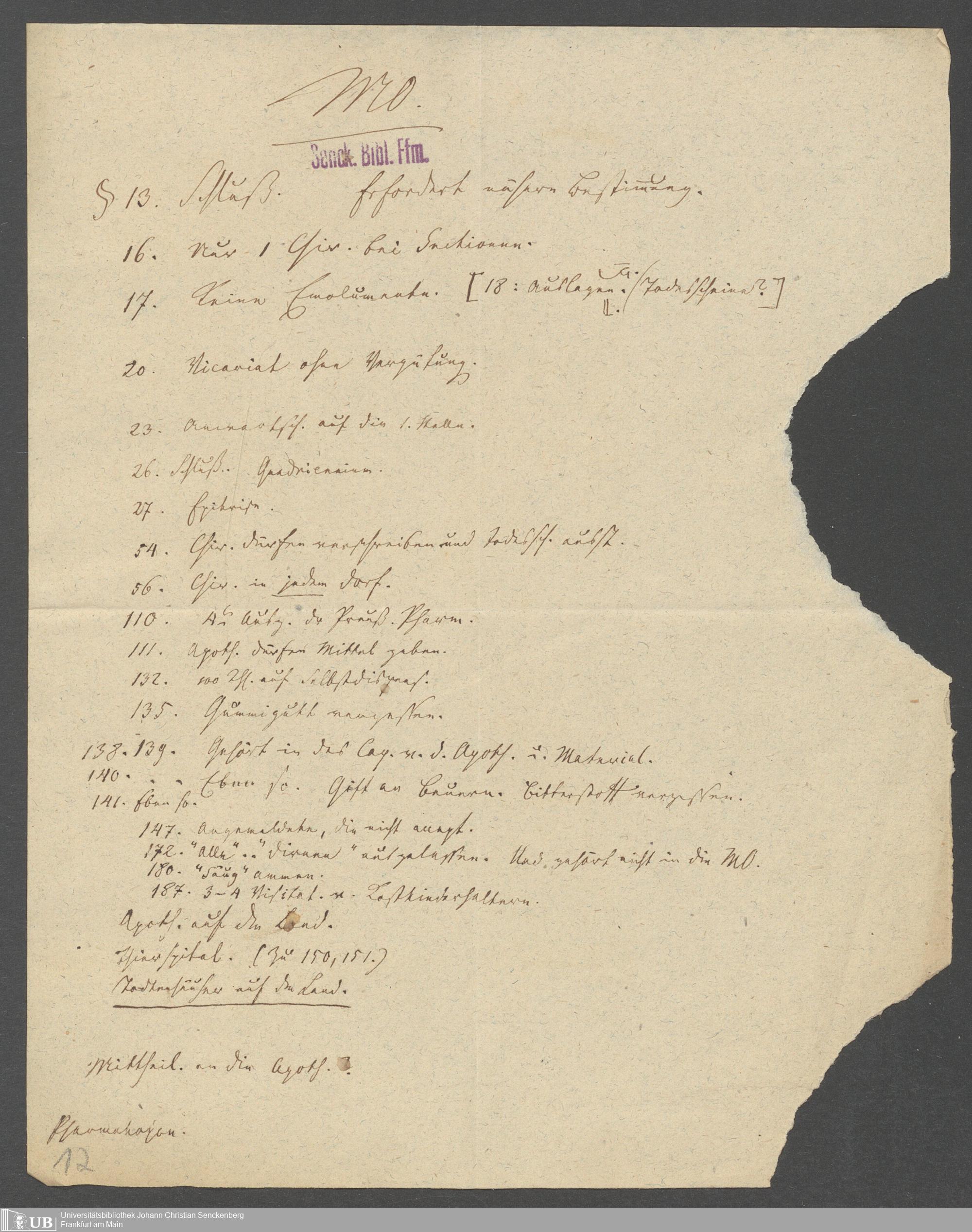 Nachlass Johann Christian Senckenberg