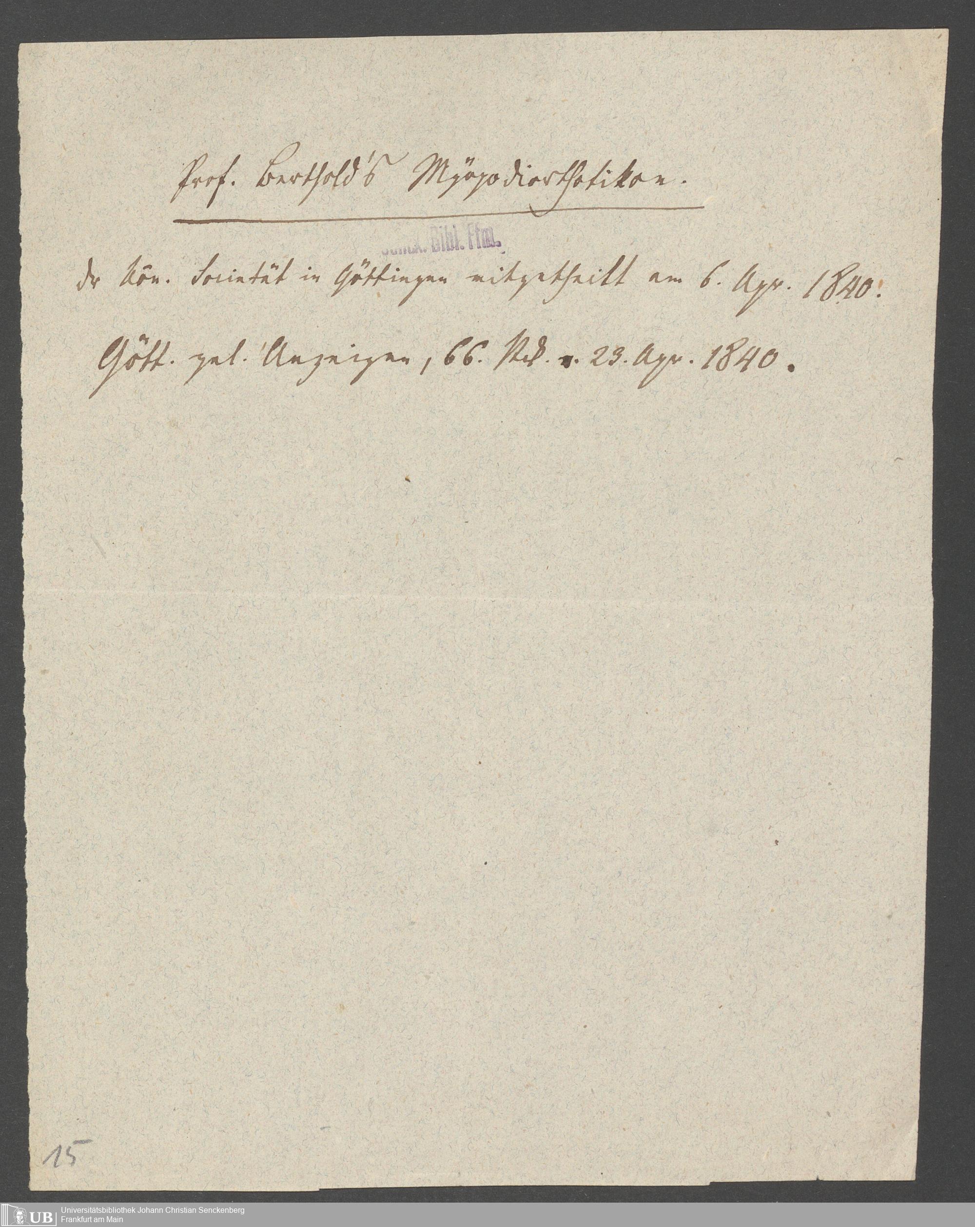Nachlass Johann Wilhelm Boegner