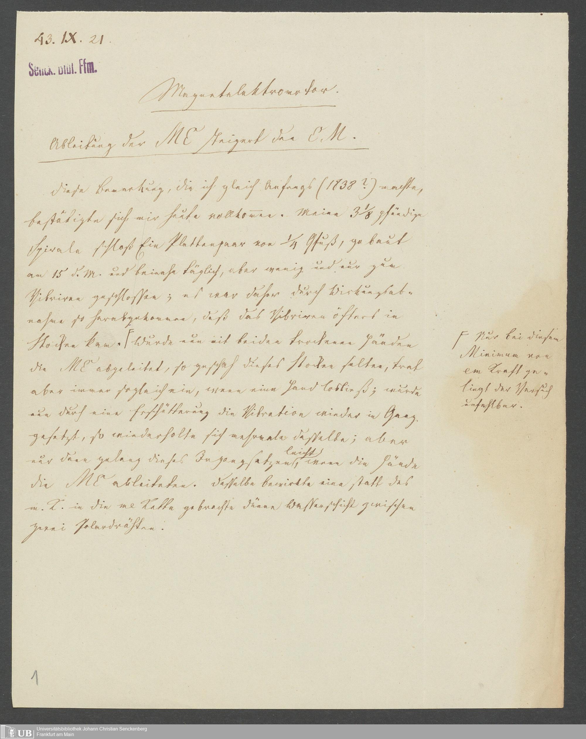 Na 83 Nachlass Christian Ernst Neeff, 46 - Christian Ernst Neeffs Magnetelektromotor