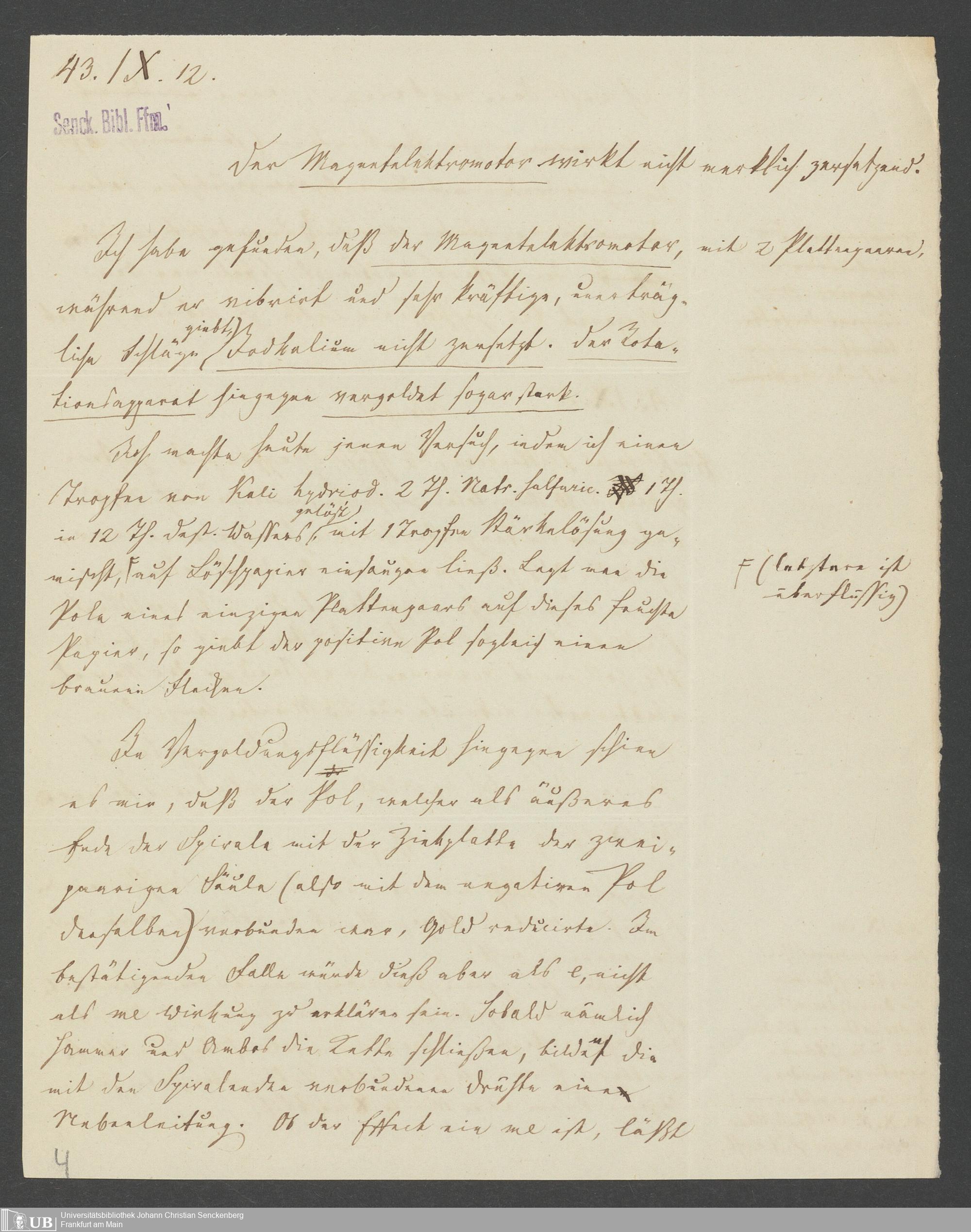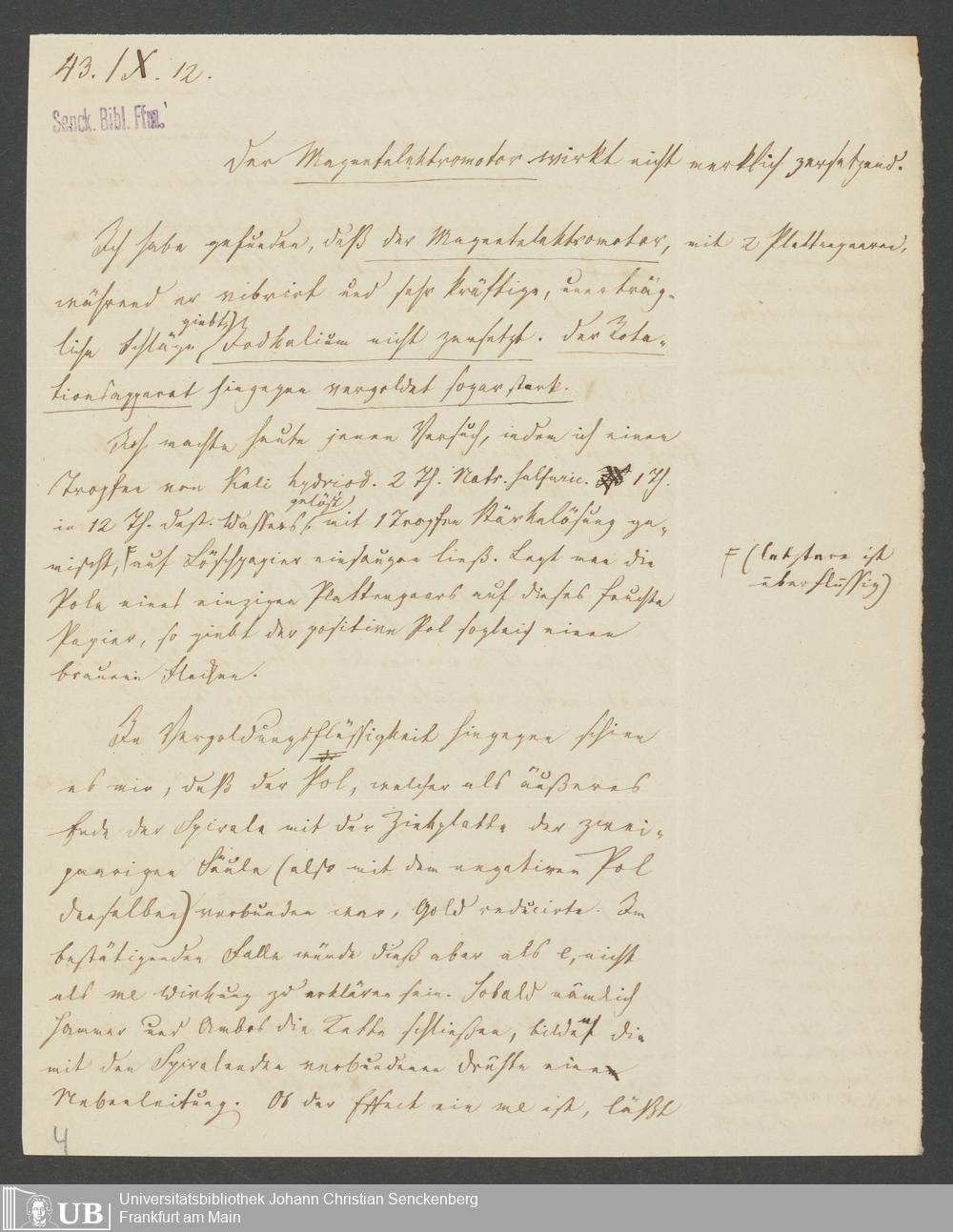 Na 83 Nachlass Christian Ernst Neeff, 46 - Christian Ernst Neeffs Magnetelektromotor