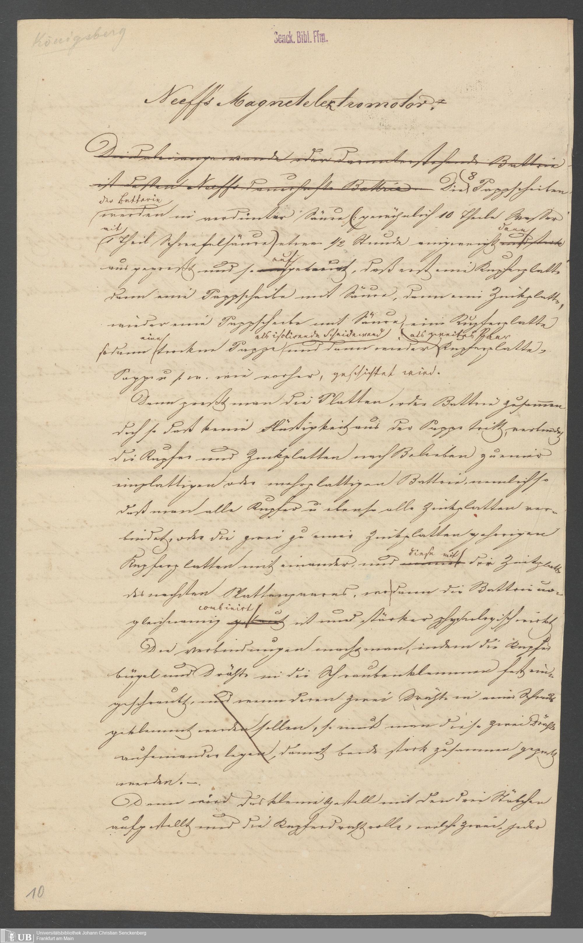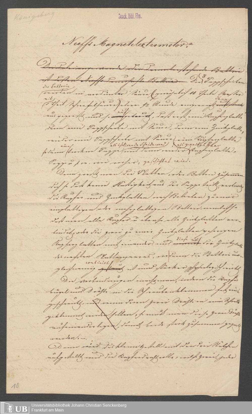 Na 83 Nachlass Christian Ernst Neeff, 46 - Christian Ernst Neeffs Magnetelektromotor