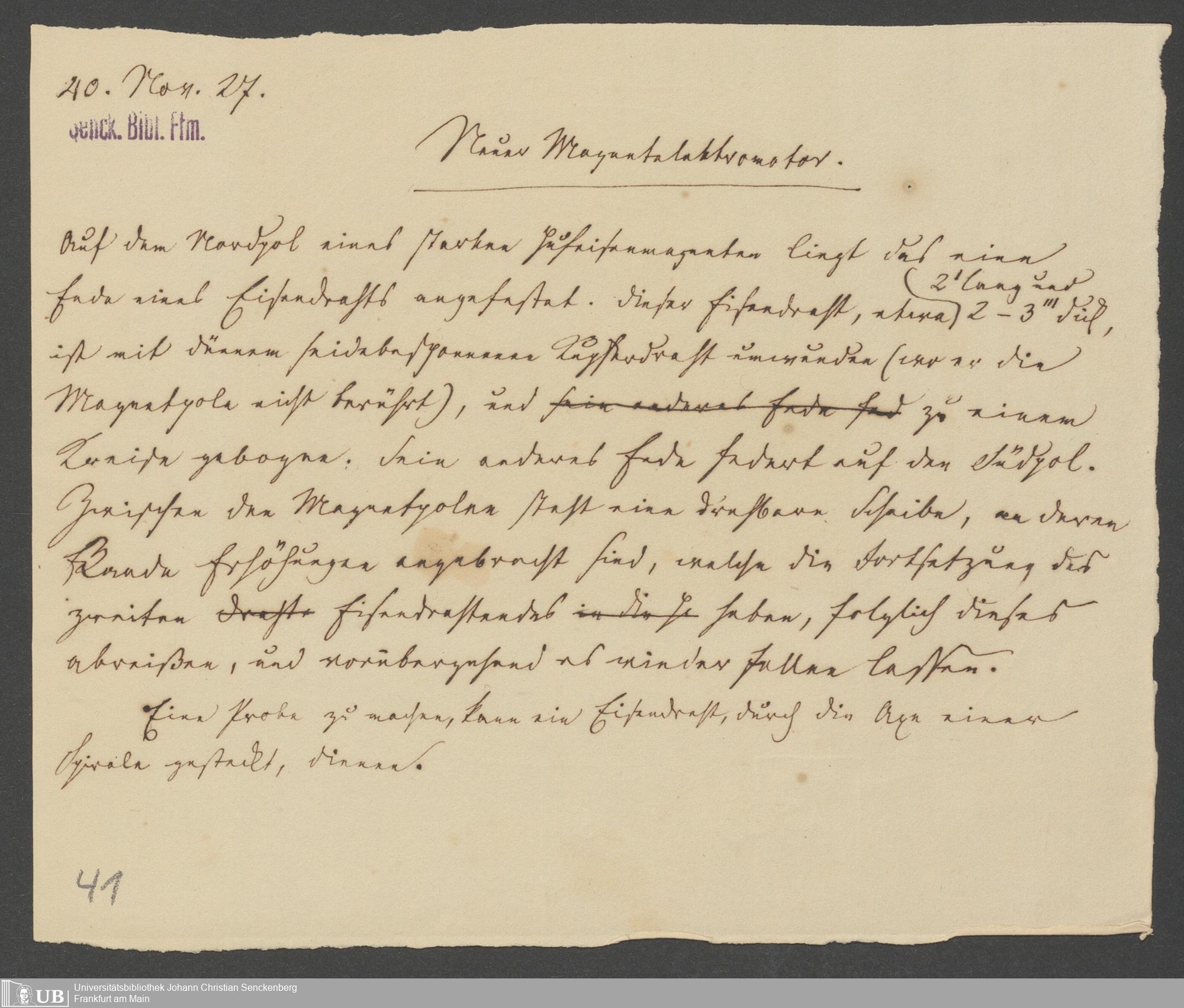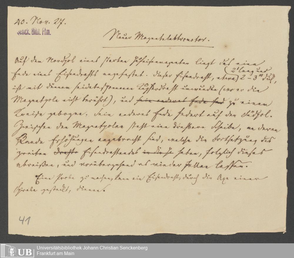 Na 83 Nachlass Christian Ernst Neeff, 46 - Christian Ernst Neeffs Magnetelektromotor