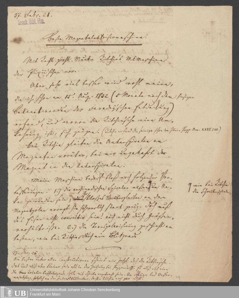 Na 83 Nachlass Christian Ernst Neeff, 47 - Magnetelektromotor und Elektromagnet
