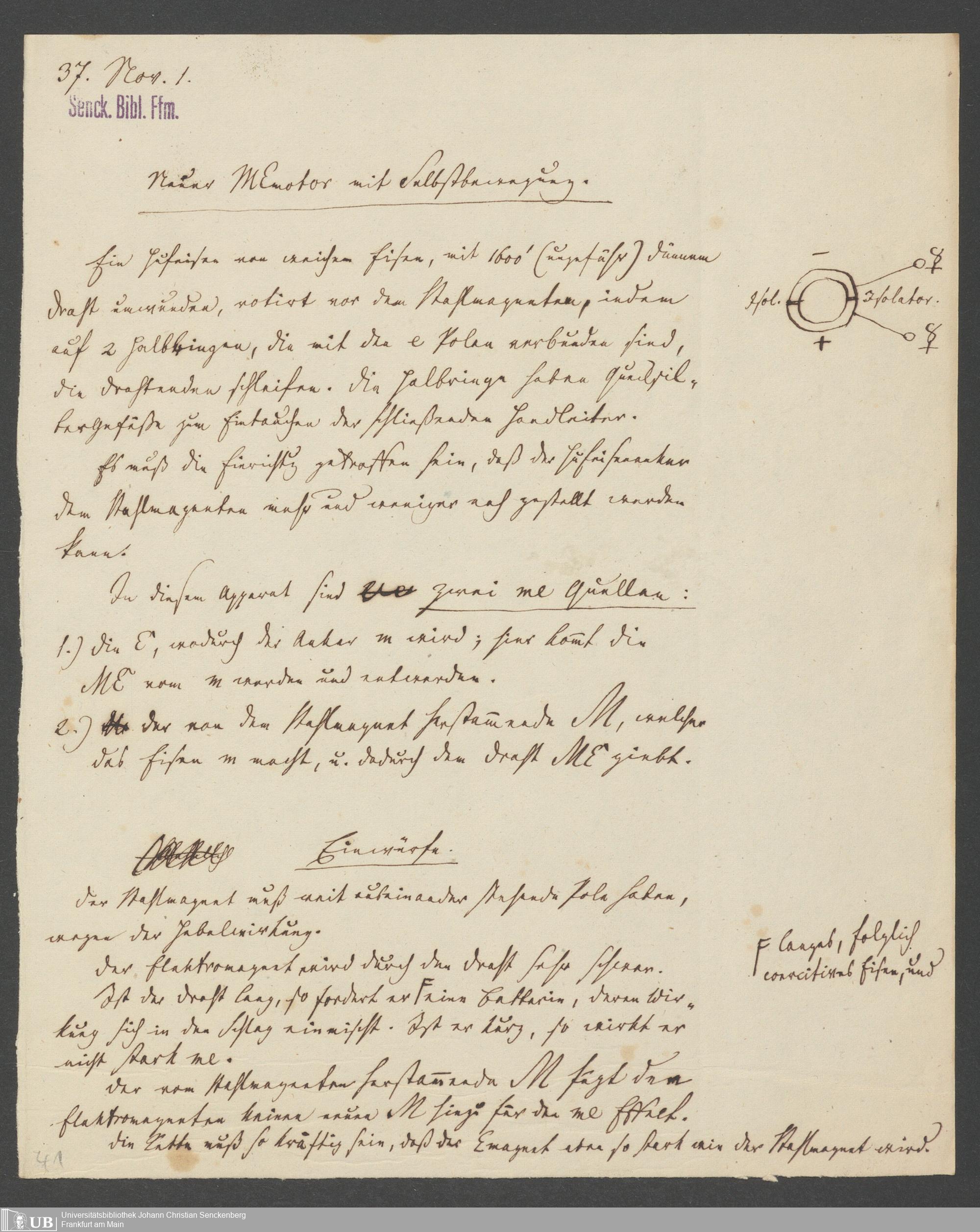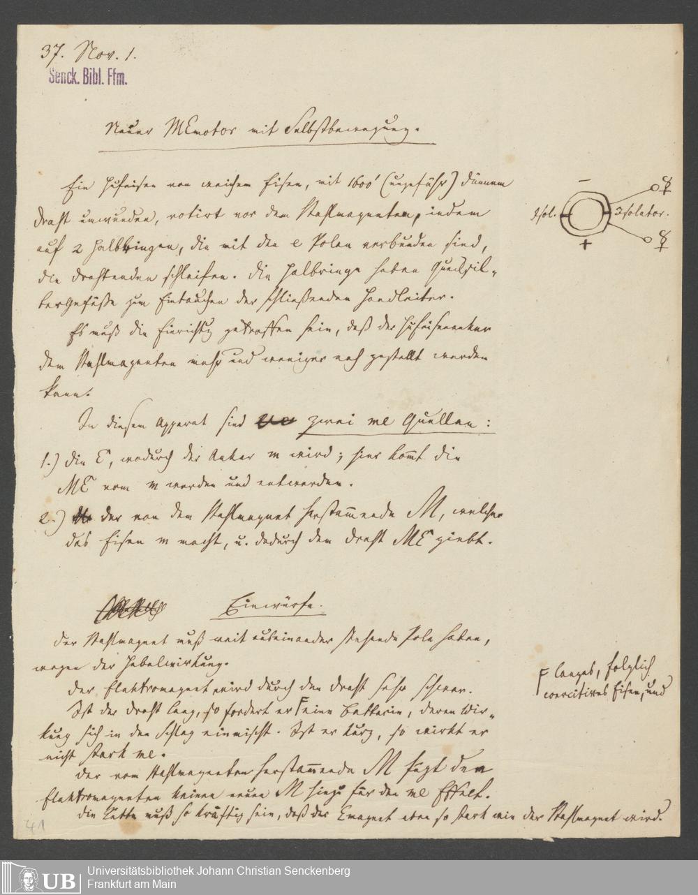 Na 83 Nachlass Christian Ernst Neeff, 47 - Magnetelektromotor und Elektromagnet