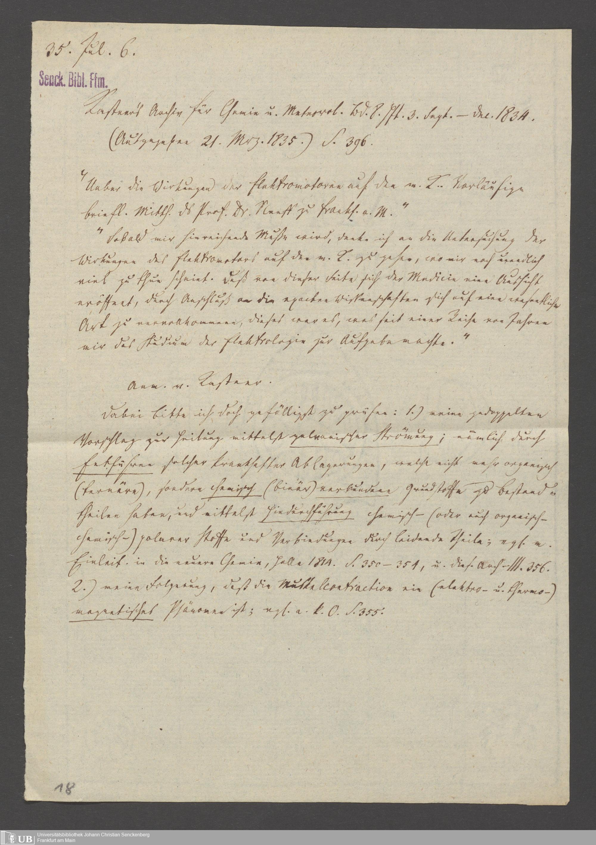 Na 83 Nachlass Christian Ernst Neeff, 36 - Wirkungen des Galvanismus