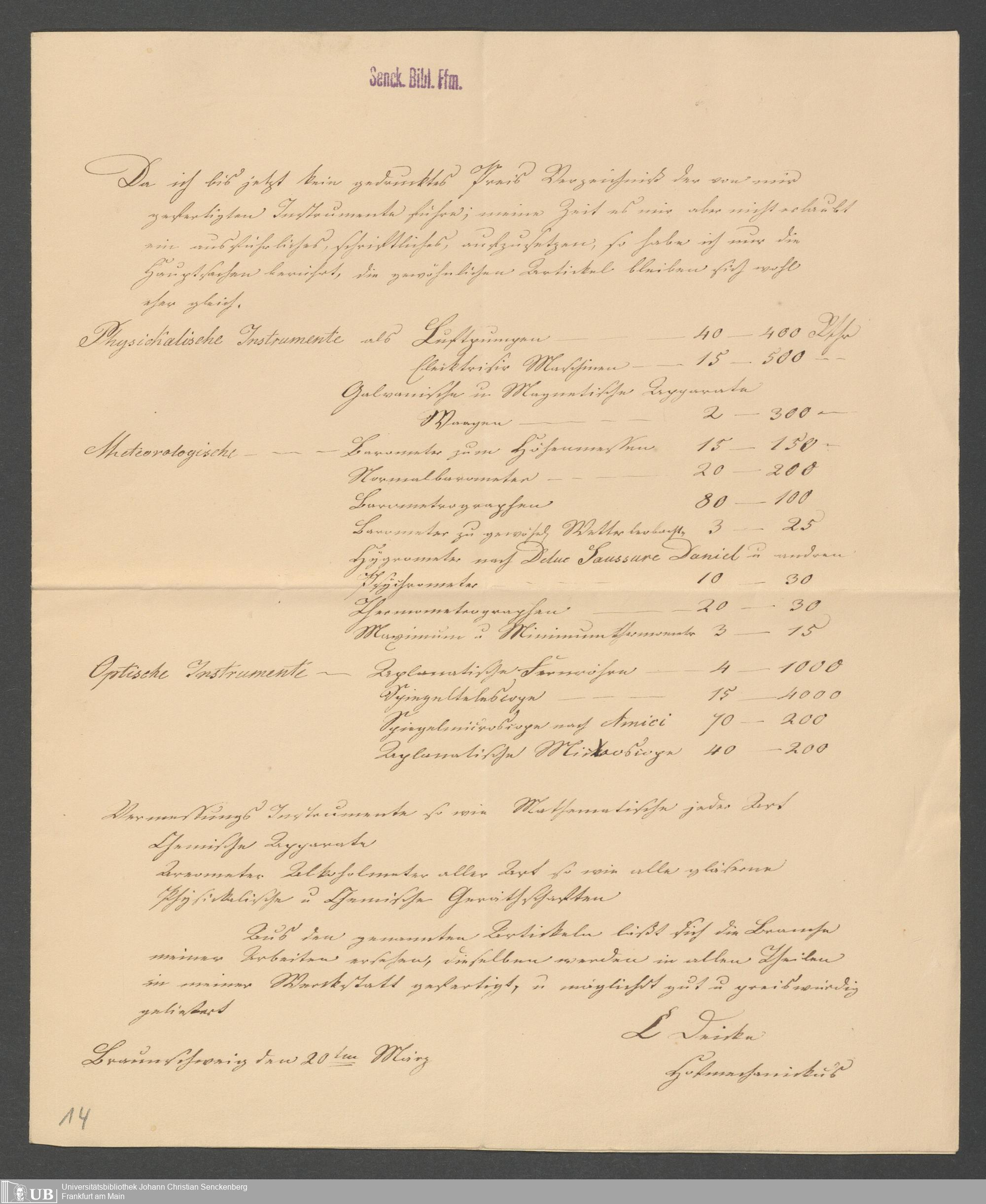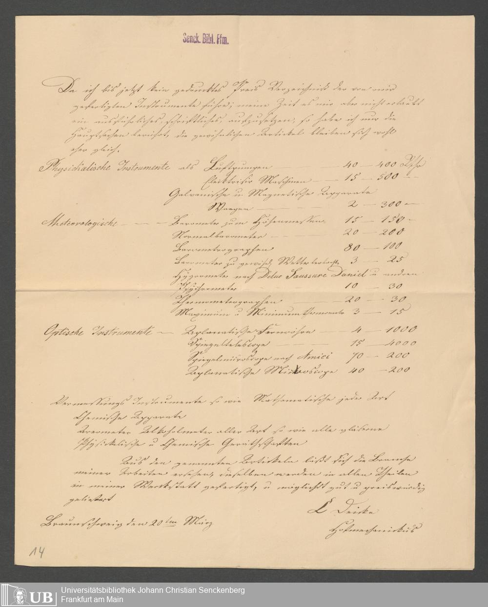 Na 83 Nachlass Christian Ernst Neeff, 52 - Physikalischer Verein