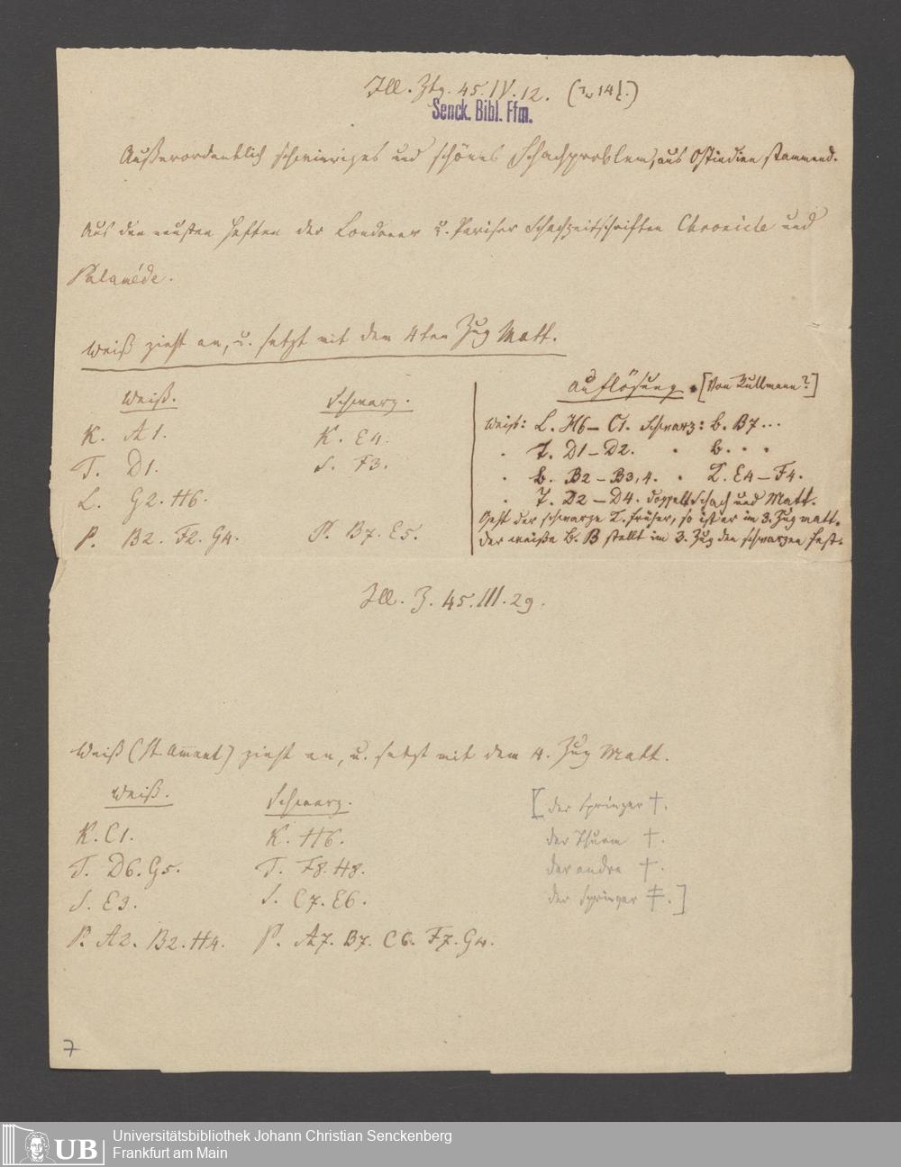 Na 83 Nachlass Christian Ernst Neeff, 60 - Sammlung zu Schachpartien, Schachzügen und Strategien beim Schach