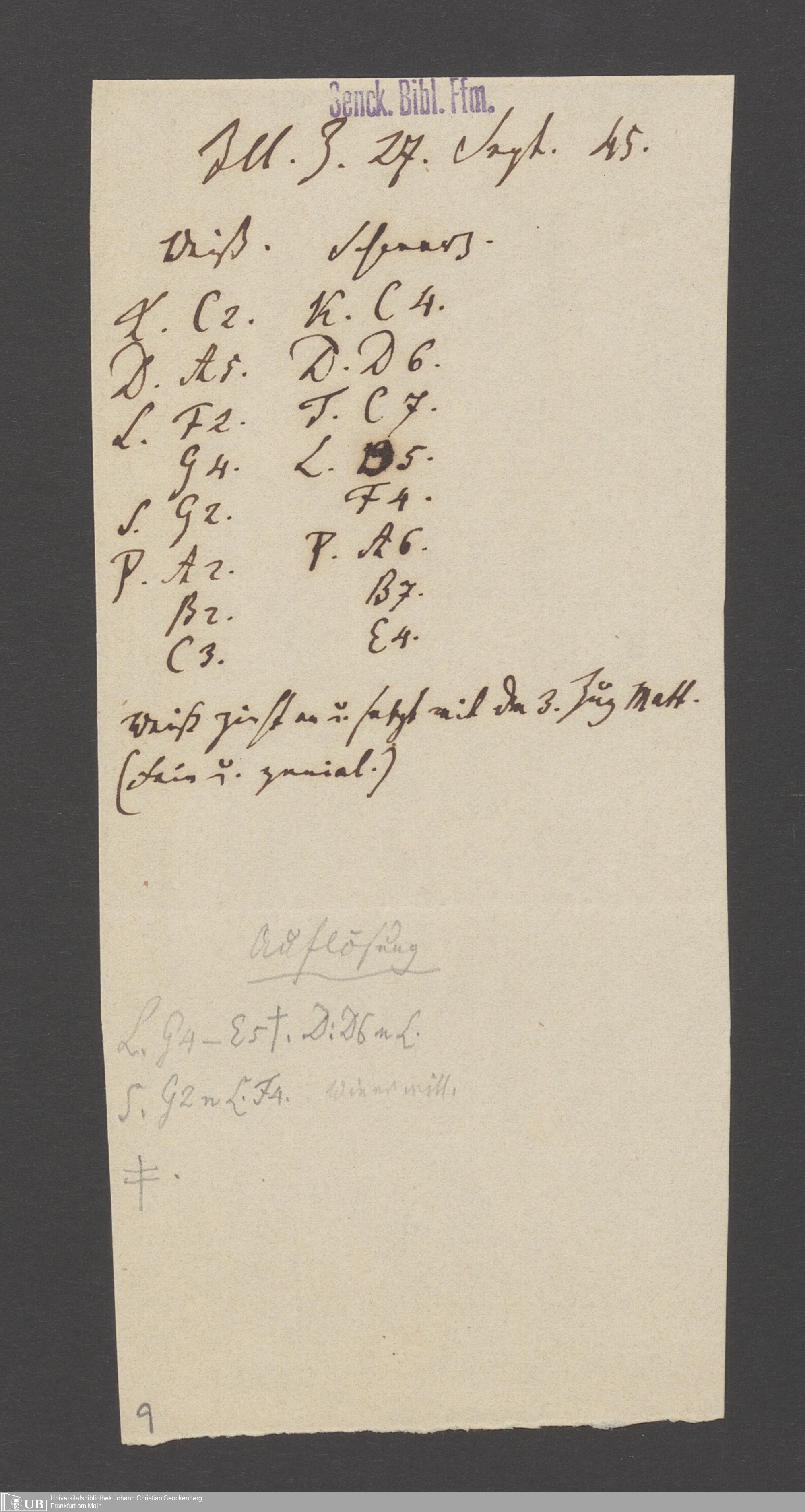 Na 83 Nachlass Christian Ernst Neeff, 60 - Sammlung zu Schachpartien, Schachzügen und Strategien beim Schach