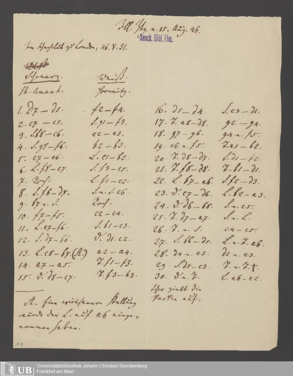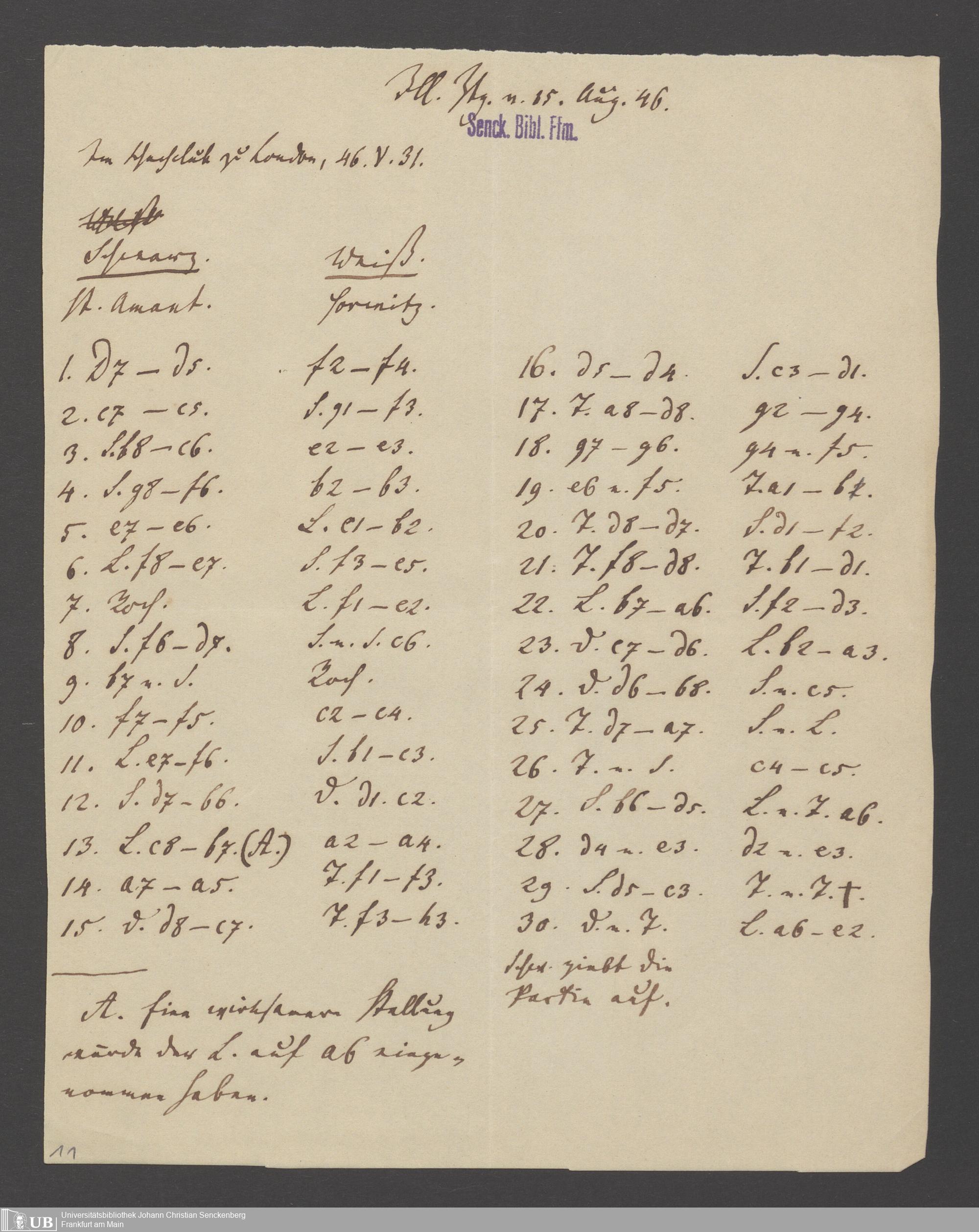 Na 83 Nachlass Christian Ernst Neeff, 60 - Sammlung zu Schachpartien, Schachzügen und Strategien beim Schach