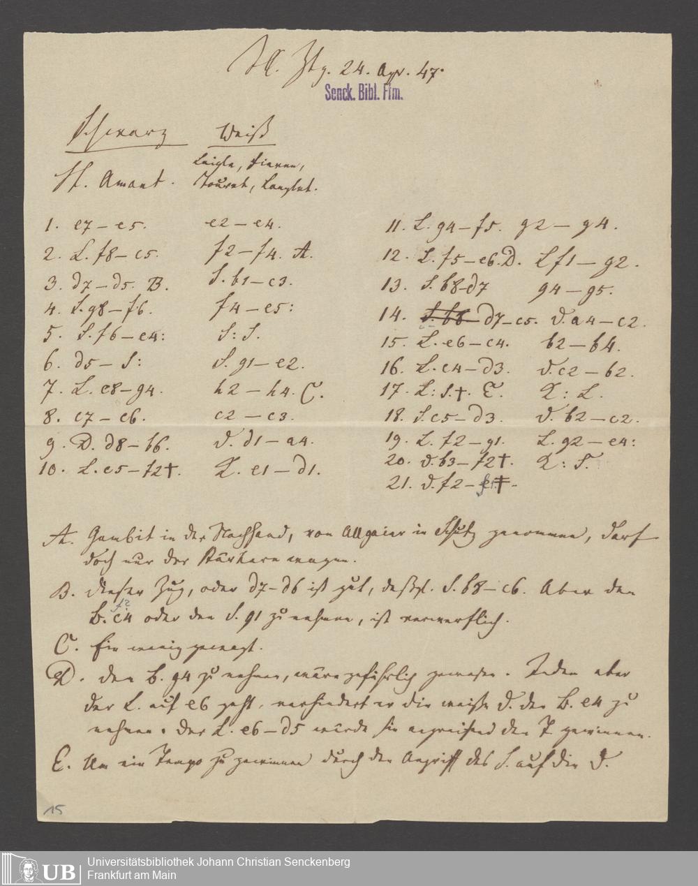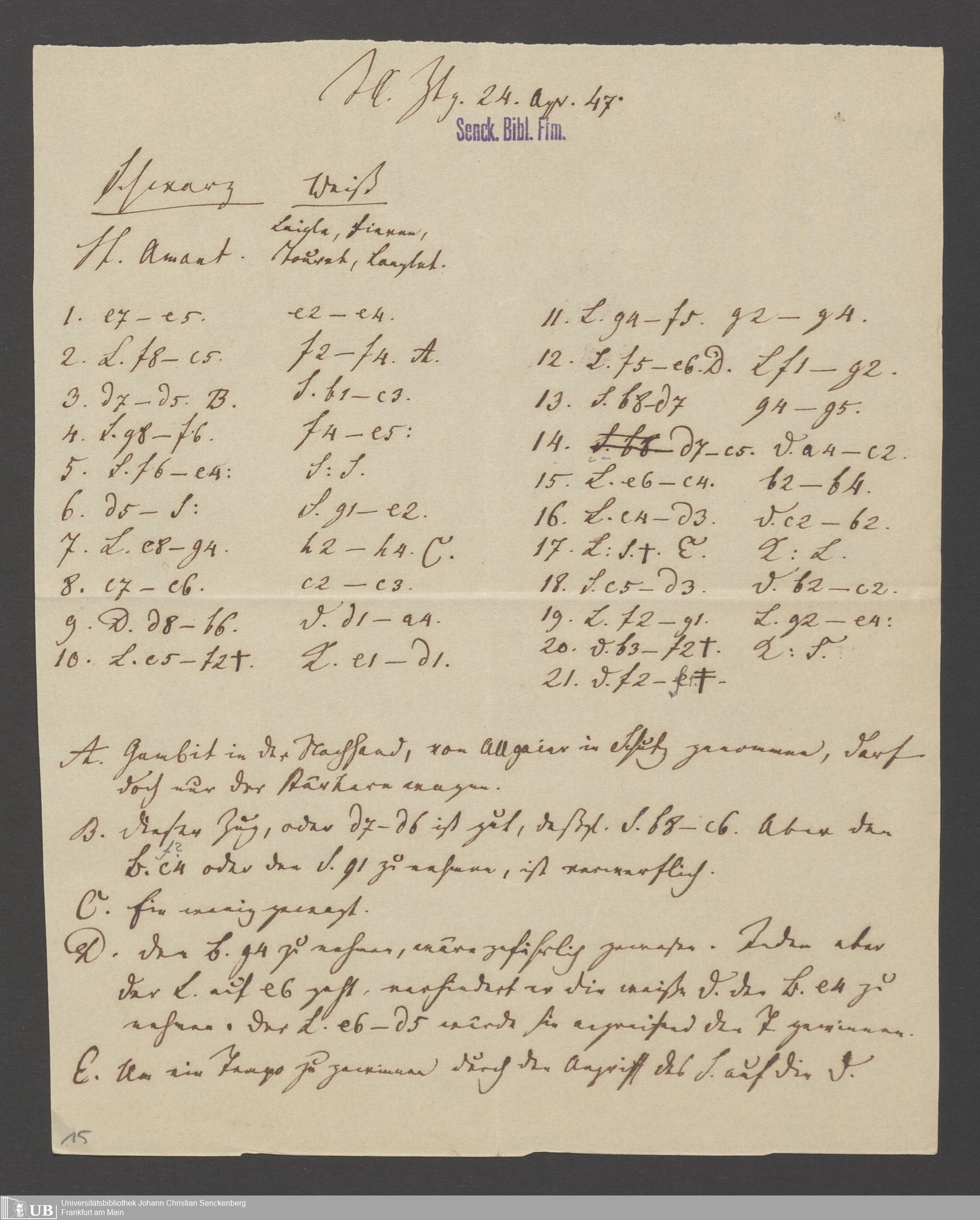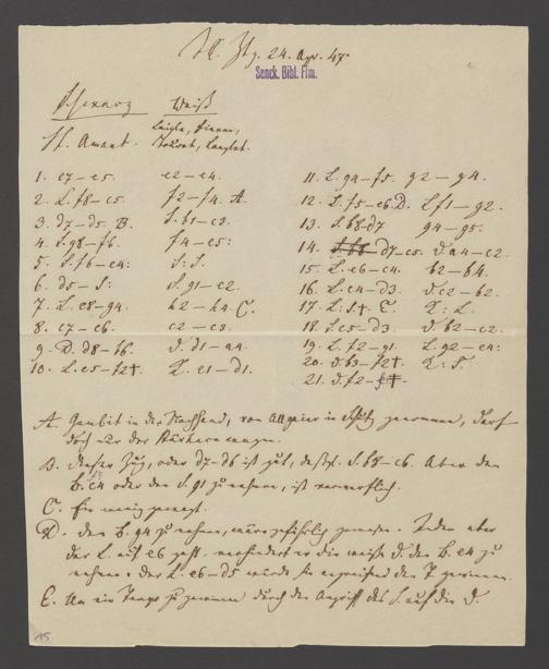 Na 83 Nachlass Christian Ernst Neeff, 60 - Sammlung zu Schachpartien, Schachzügen und Strategien beim Schach