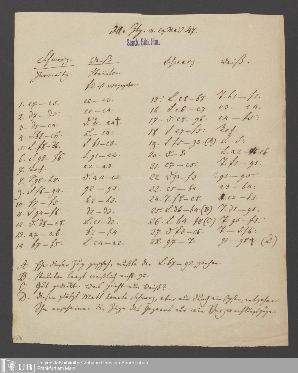 Na 83 Nachlass Christian Ernst Neeff, 60 - Sammlung zu Schachpartien, Schachzügen und Strategien beim Schach