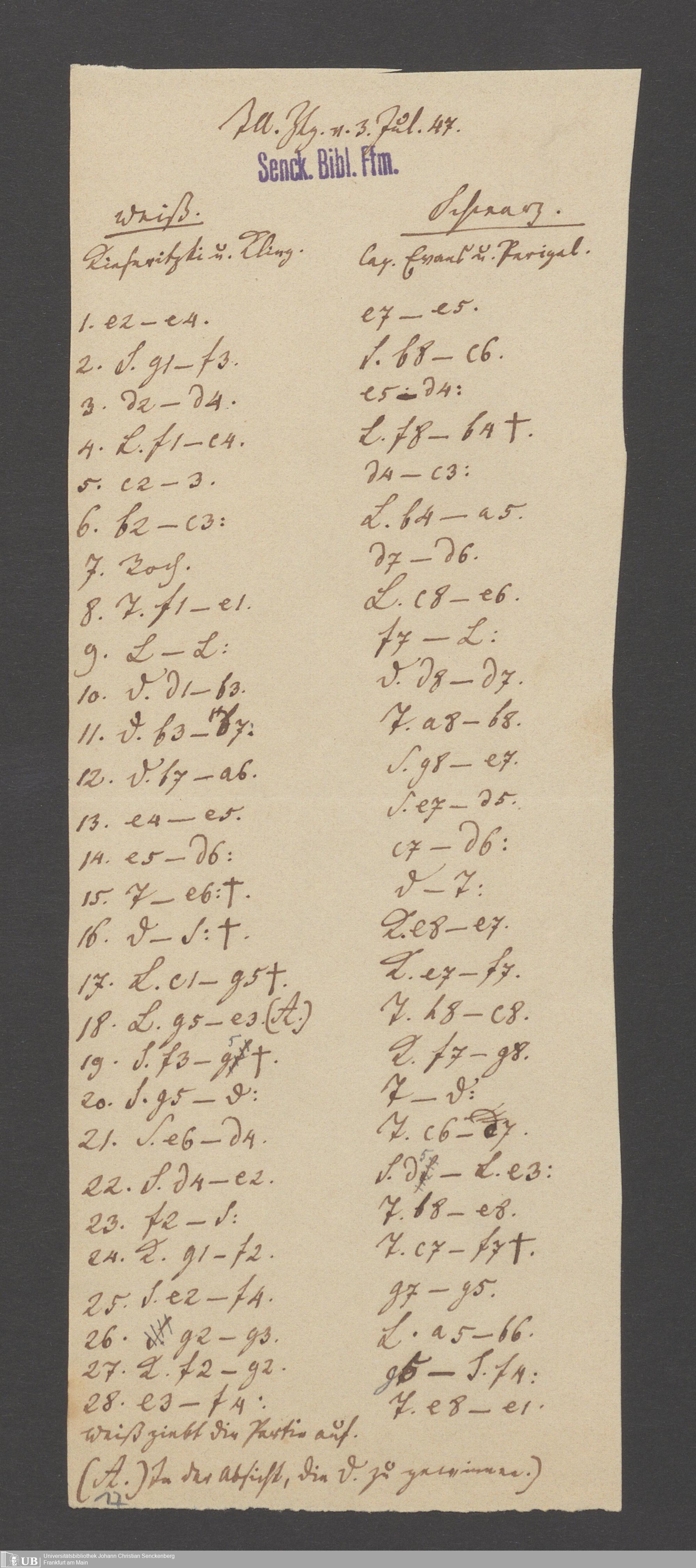 Na 83 Nachlass Christian Ernst Neeff, 60 - Sammlung zu Schachpartien, Schachzügen und Strategien beim Schach