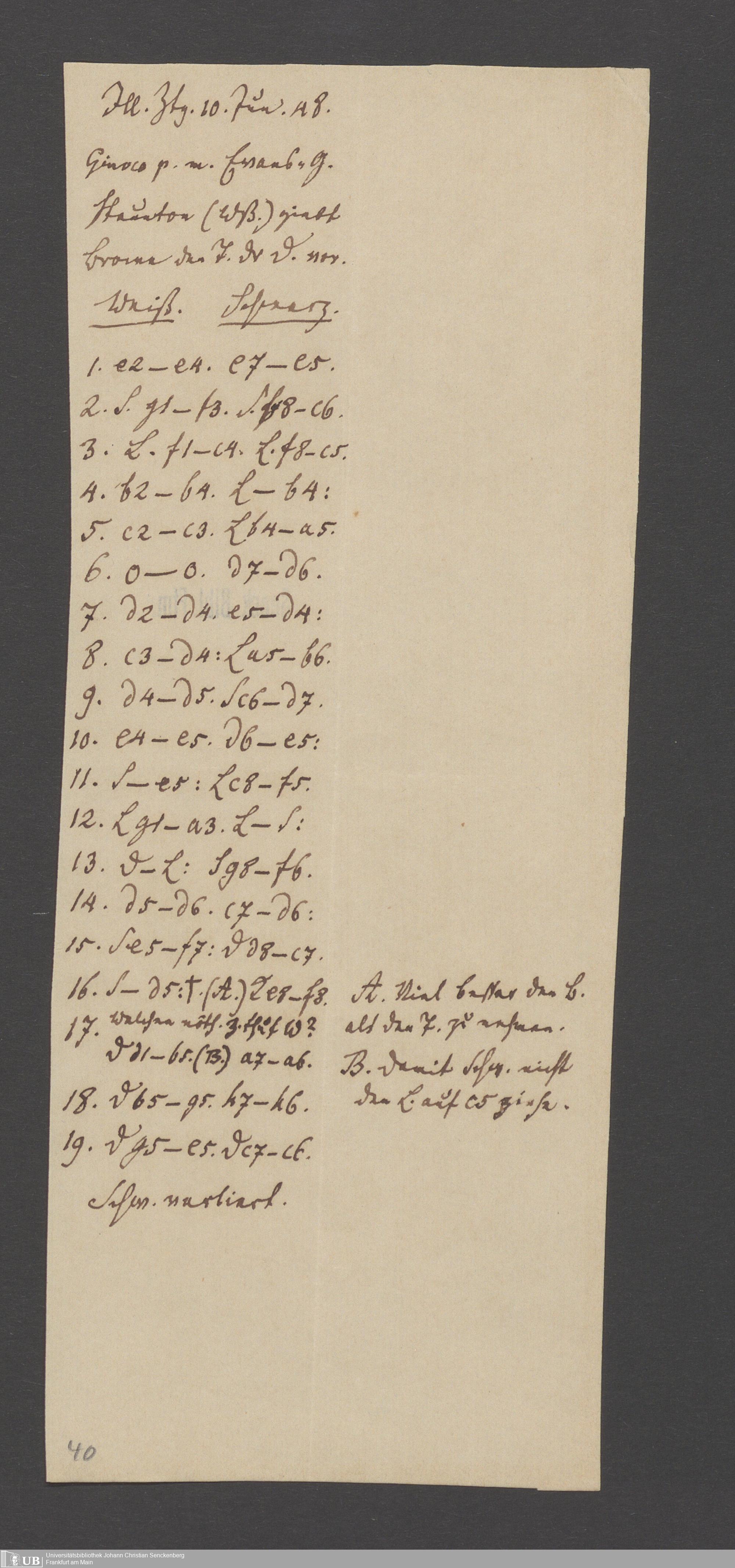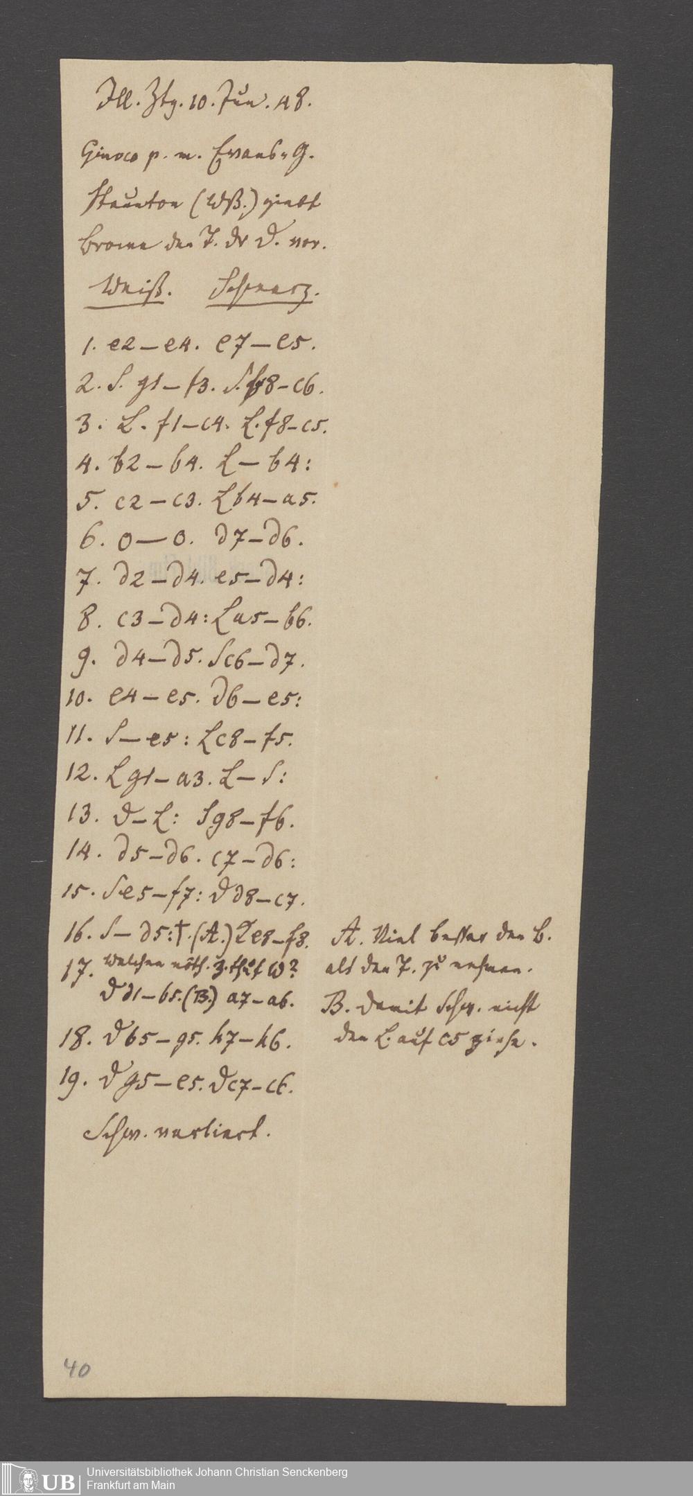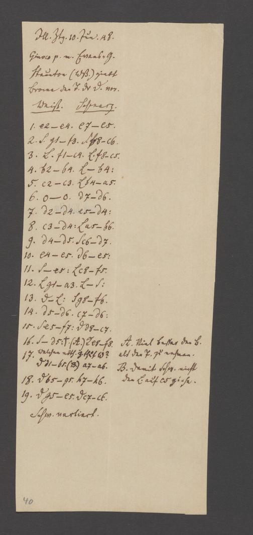 Na 83 Nachlass Christian Ernst Neeff, 60 - Sammlung zu Schachpartien, Schachzügen und Strategien beim Schach