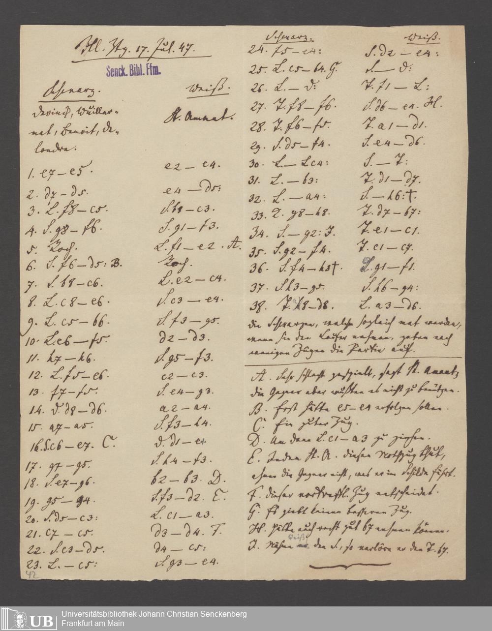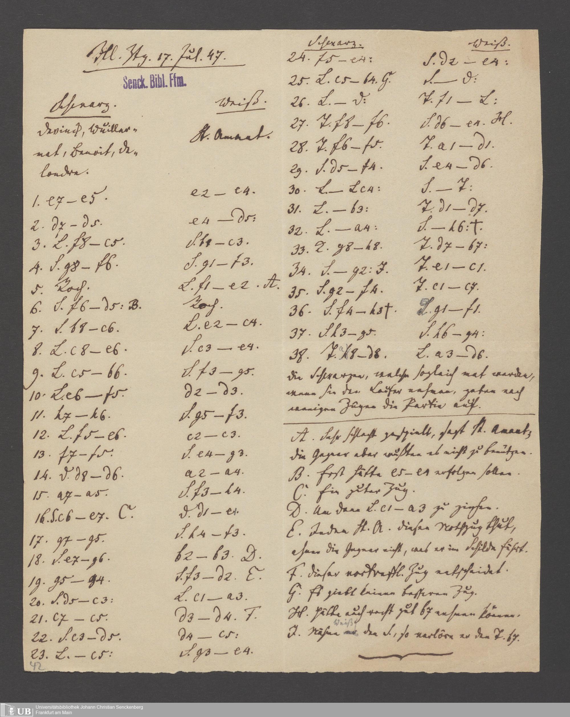 Na 83 Nachlass Christian Ernst Neeff, 60 - Sammlung zu Schachpartien, Schachzügen und Strategien beim Schach