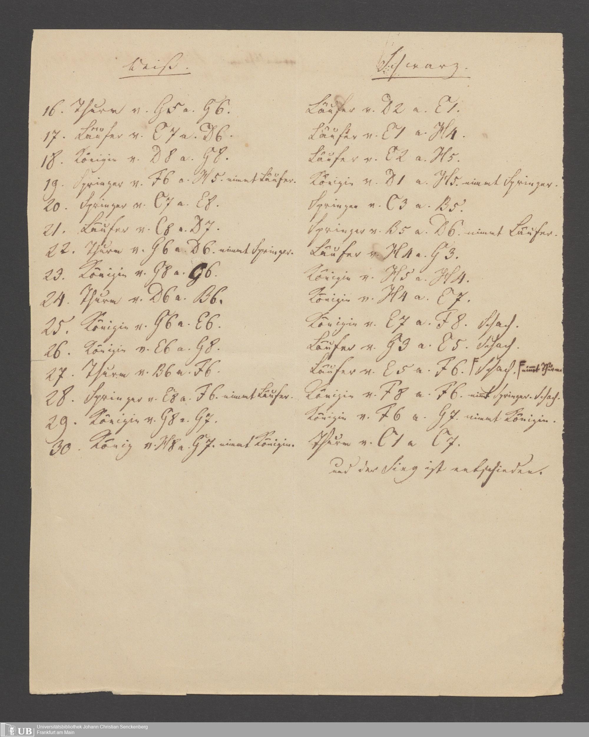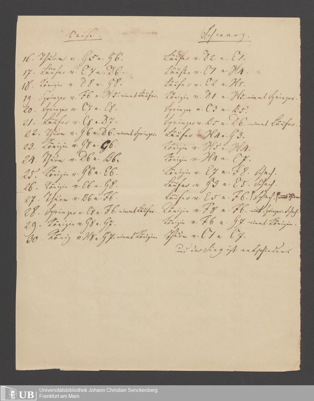 Na 83 Nachlass Christian Ernst Neeff, 60 - Sammlung zu Schachpartien, Schachzügen und Strategien beim Schach