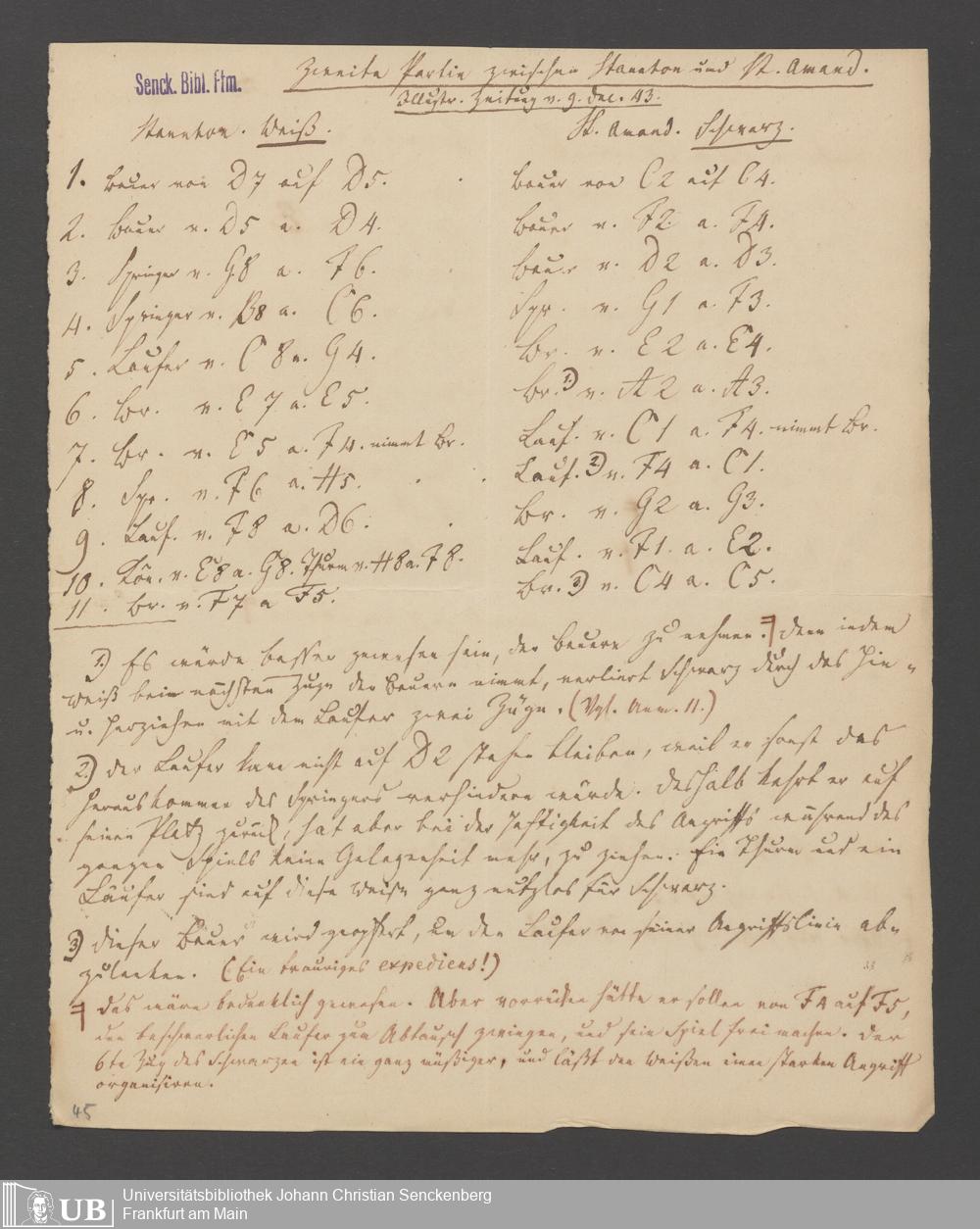 Na 83 Nachlass Christian Ernst Neeff, 60 - Sammlung zu Schachpartien, Schachzügen und Strategien beim Schach