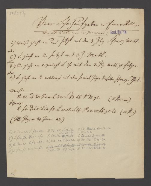 Na 83 Nachlass Christian Ernst Neeff, 60 - Sammlung zu Schachpartien, Schachzügen und Strategien beim Schach