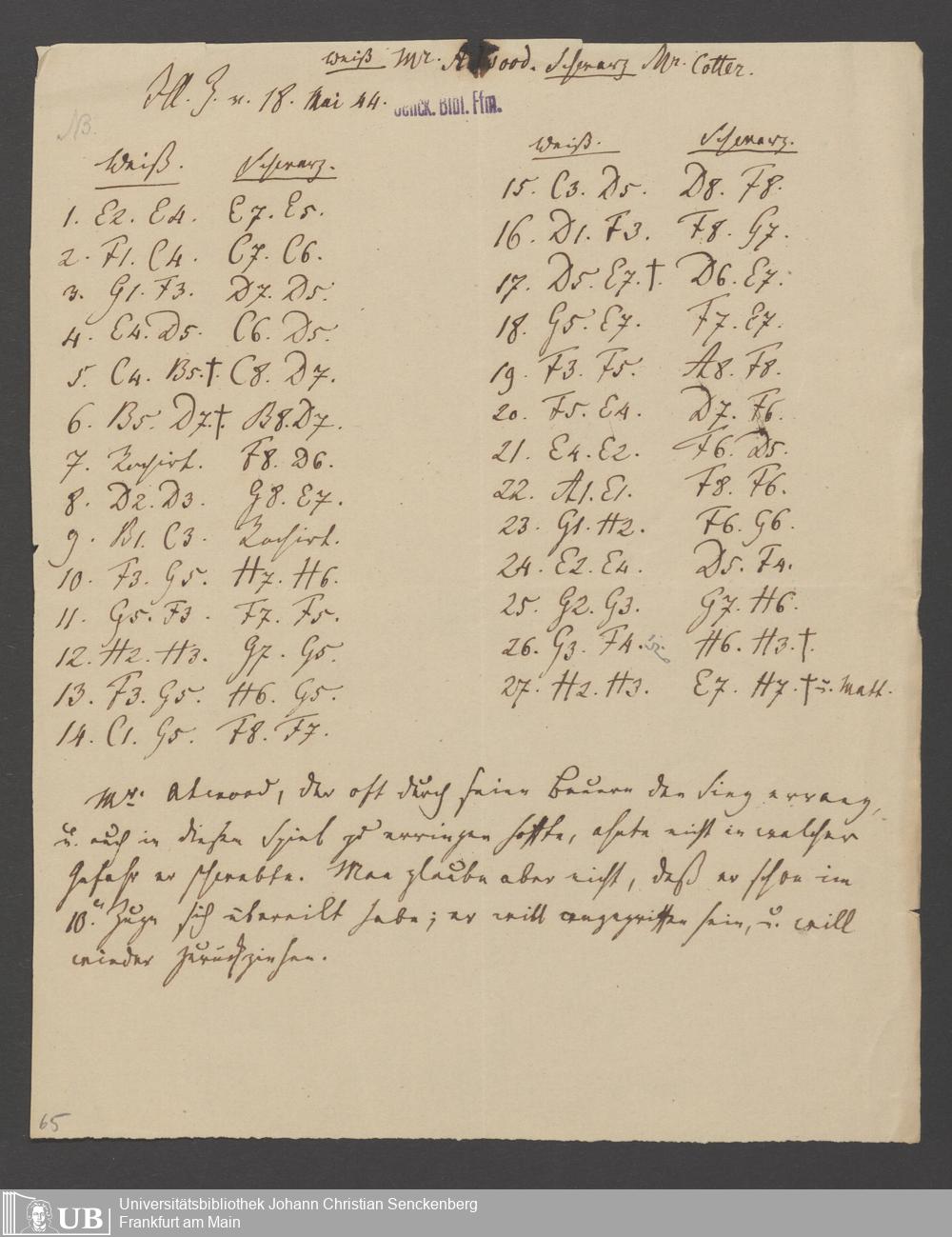 Na 83 Nachlass Christian Ernst Neeff, 60 - Sammlung zu Schachpartien, Schachzügen und Strategien beim Schach