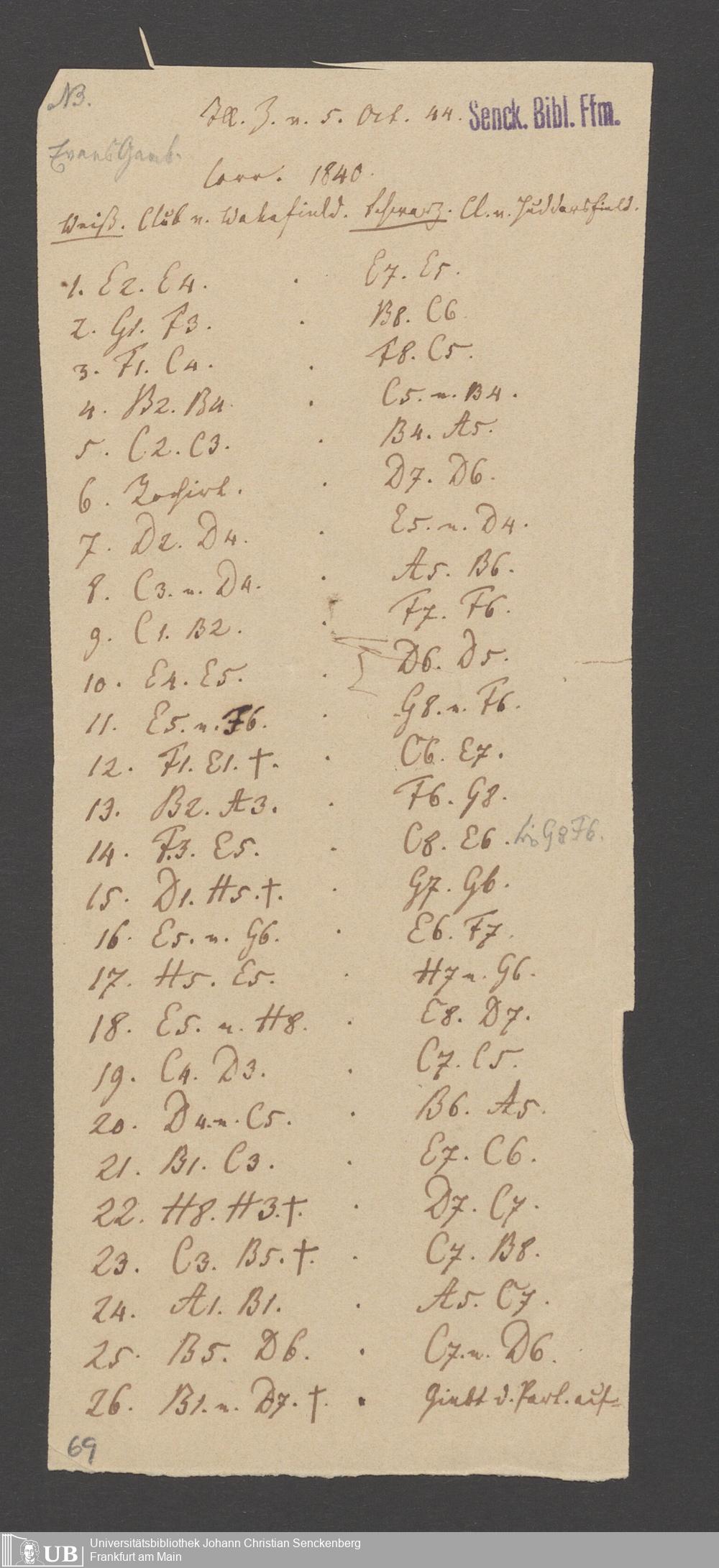 Na 83 Nachlass Christian Ernst Neeff, 60 - Sammlung zu Schachpartien, Schachzügen und Strategien beim Schach