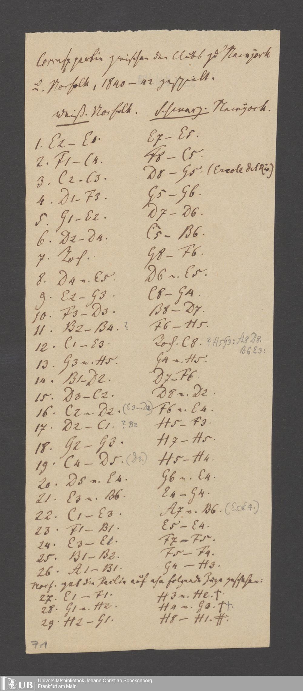 Na 83 Nachlass Christian Ernst Neeff, 60 - Sammlung zu Schachpartien, Schachzügen und Strategien beim Schach