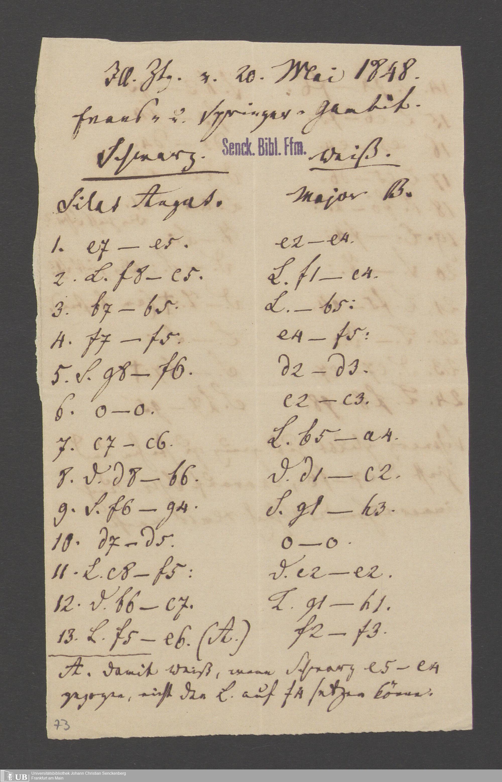 Na 83 Nachlass Christian Ernst Neeff, 60 - Sammlung zu Schachpartien, Schachzügen und Strategien beim Schach