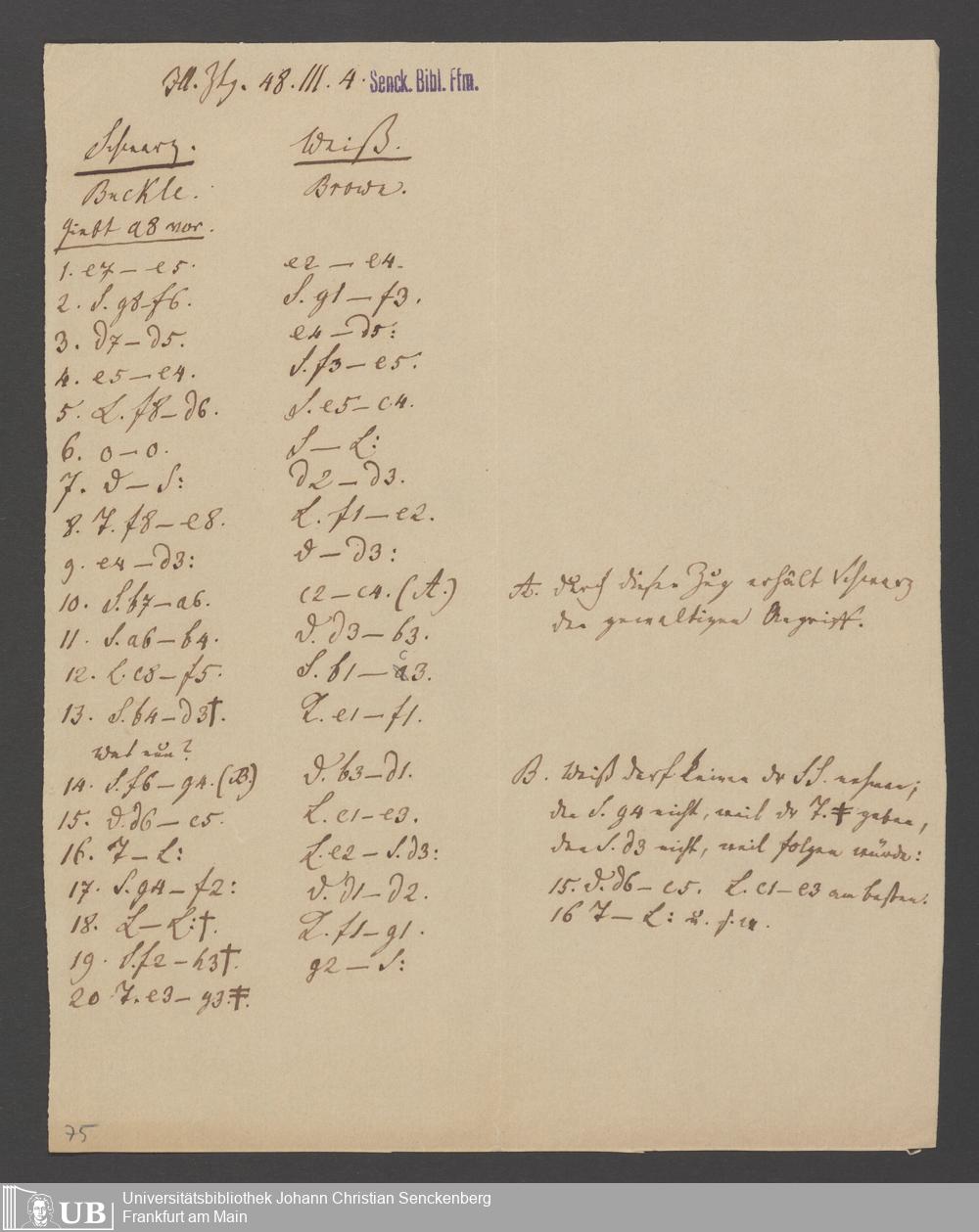 Na 83 Nachlass Christian Ernst Neeff, 60 - Sammlung zu Schachpartien, Schachzügen und Strategien beim Schach