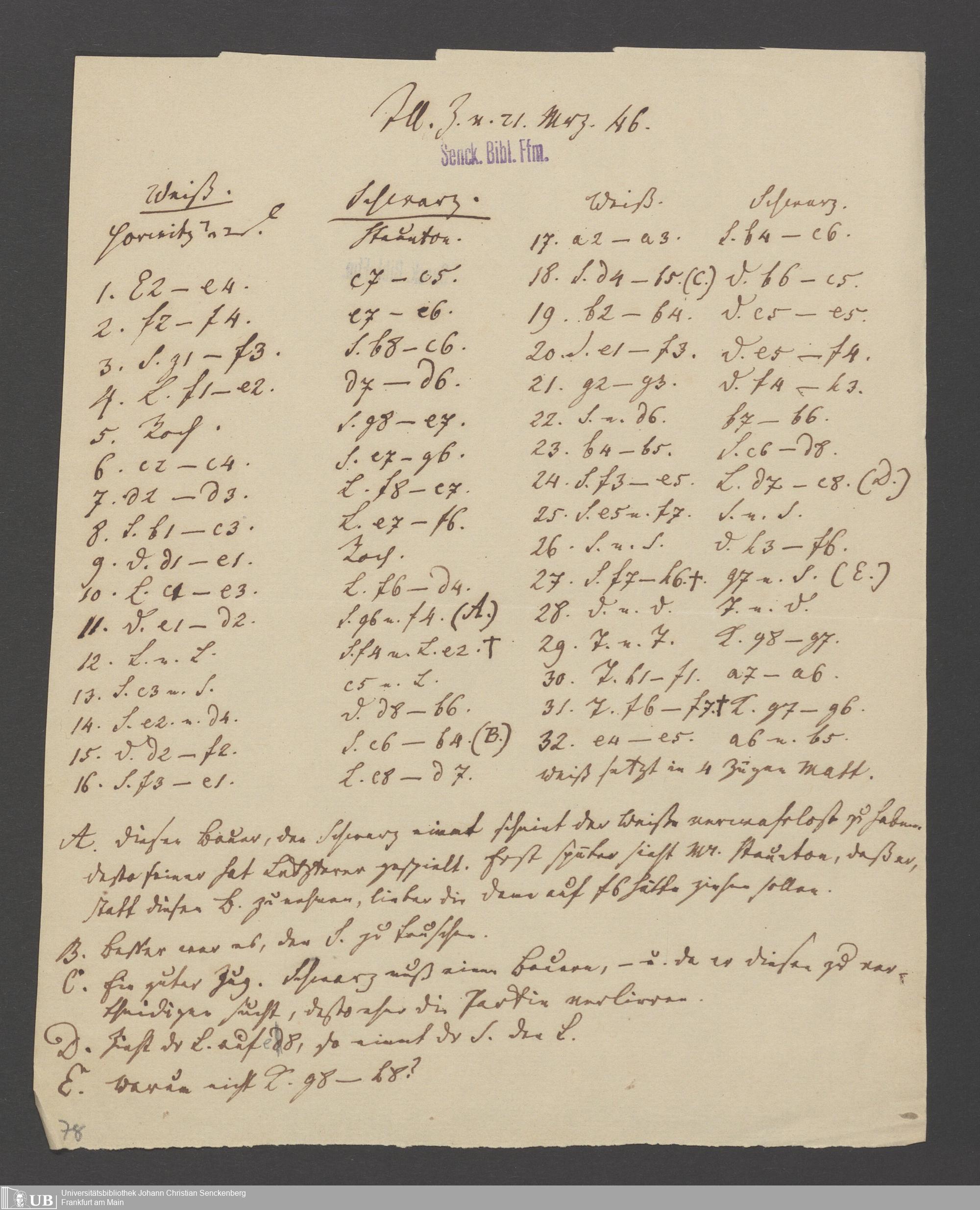 Na 83 Nachlass Christian Ernst Neeff, 60 - Sammlung zu Schachpartien, Schachzügen und Strategien beim Schach