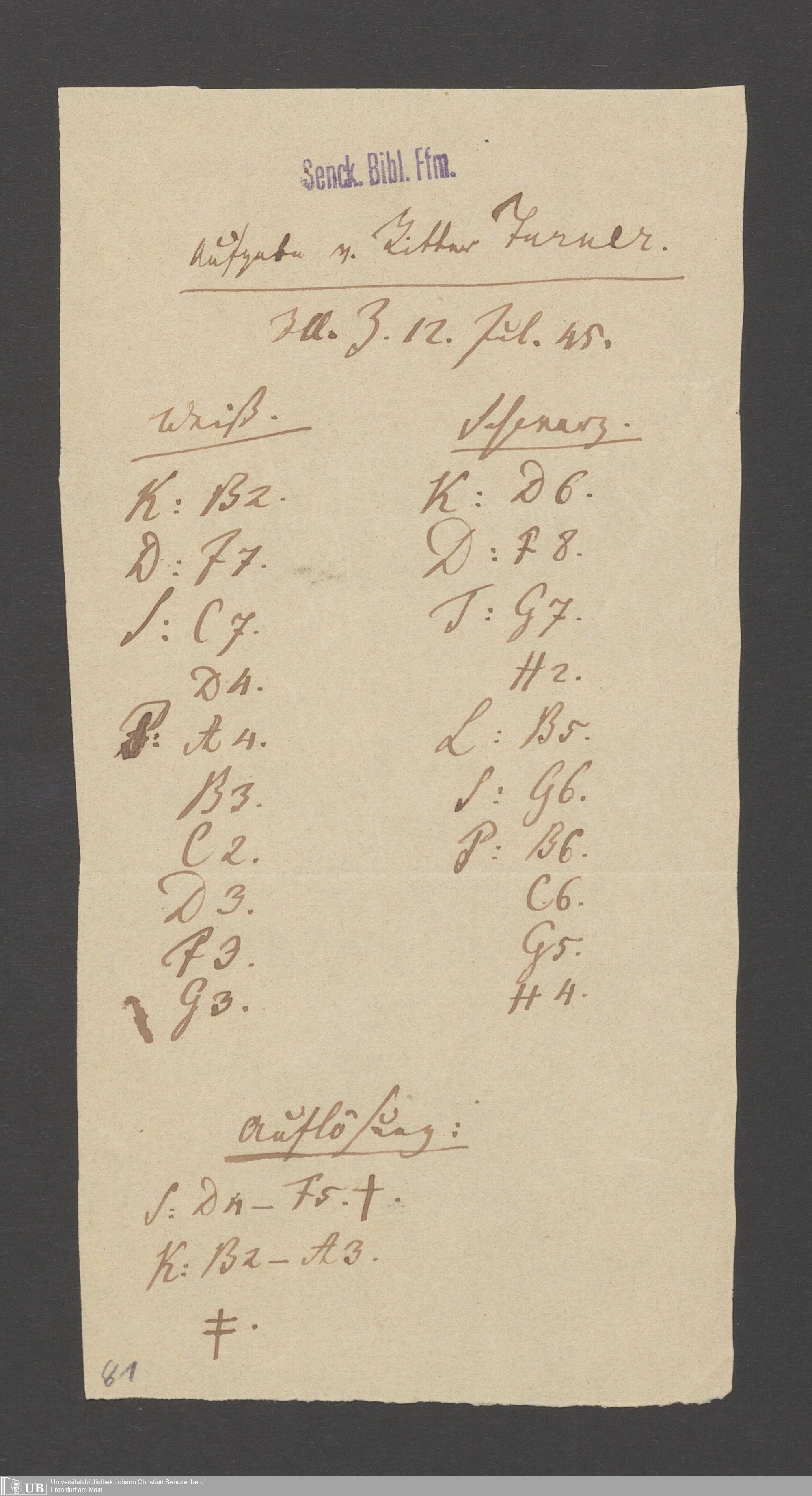 Na 83 Nachlass Christian Ernst Neeff, 60 - Sammlung zu Schachpartien, Schachzügen und Strategien beim Schach