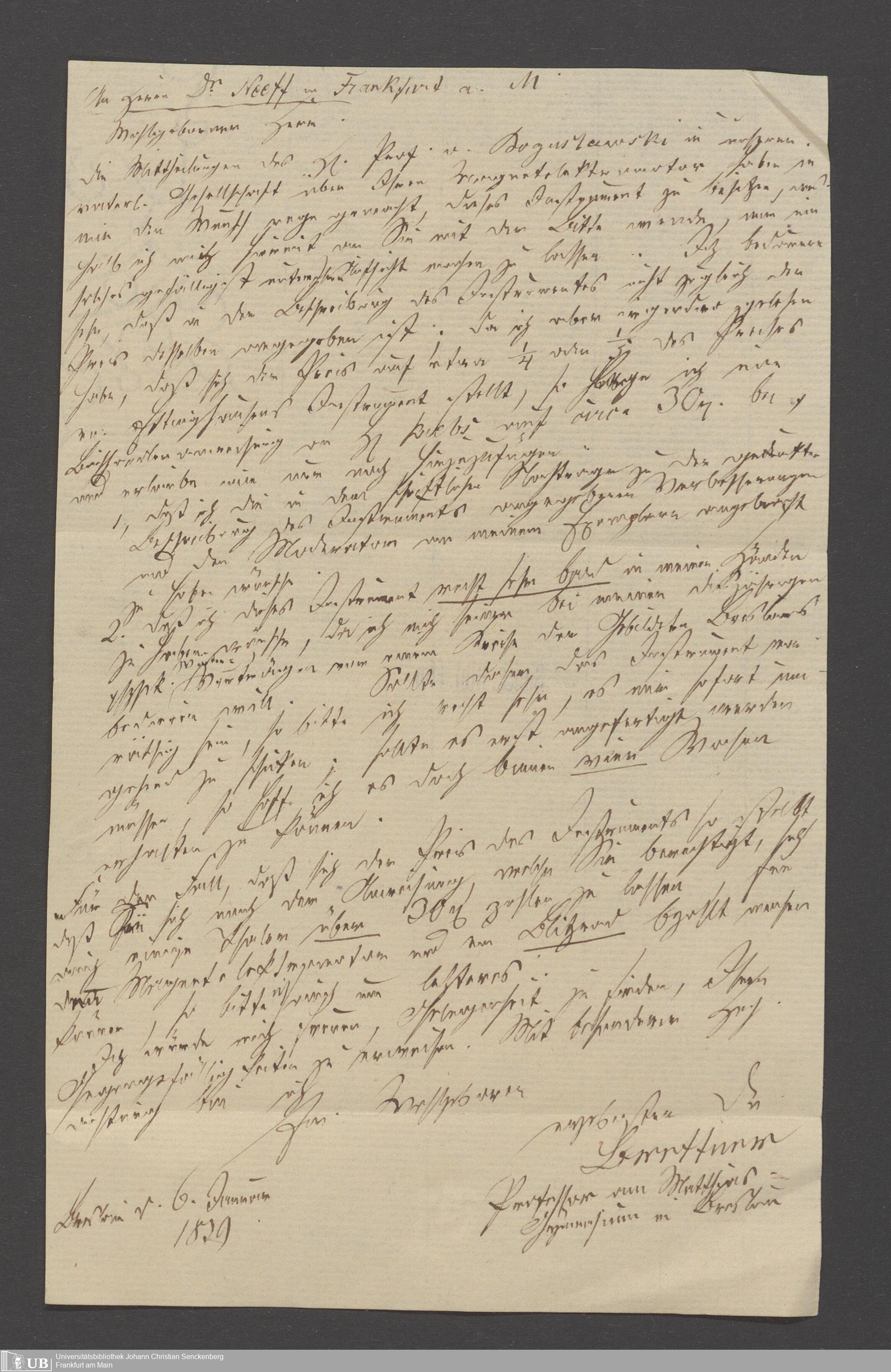 Na 83 Nachlass Christian Ernst Neeff, 61 - Schreiben an Christian Ernst Neeff