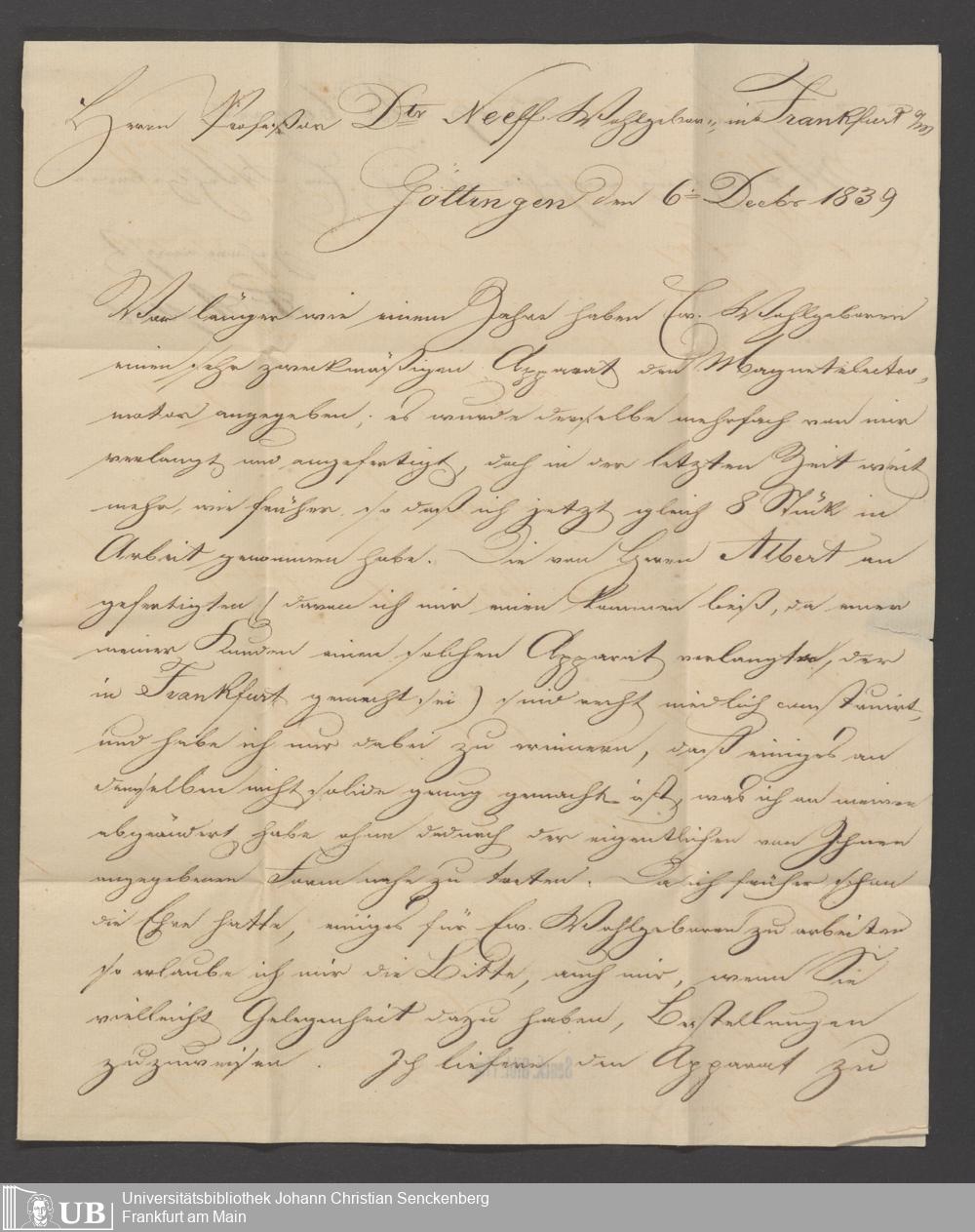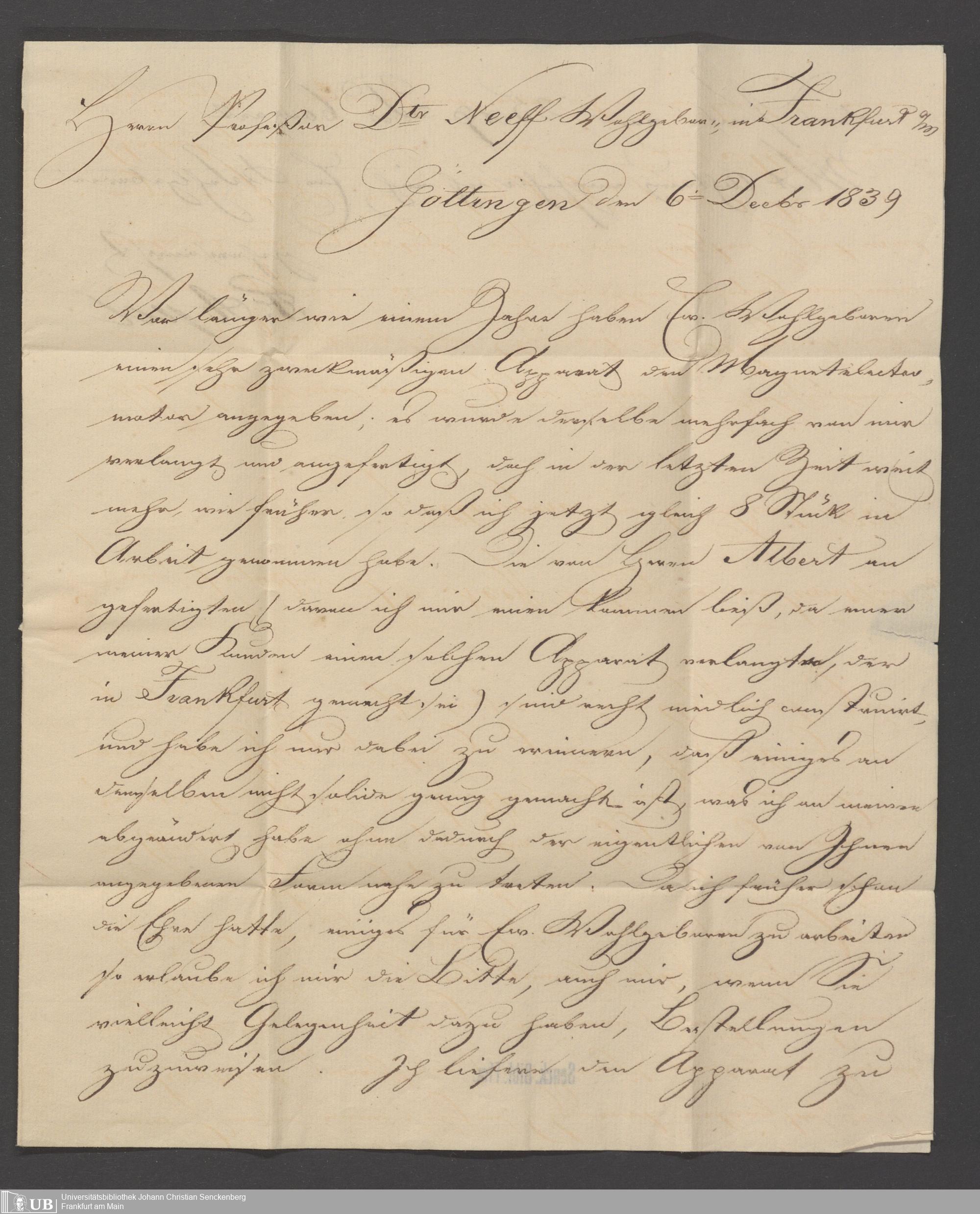 Na 83 Nachlass Christian Ernst Neeff, 61 - Schreiben an Christian Ernst Neeff