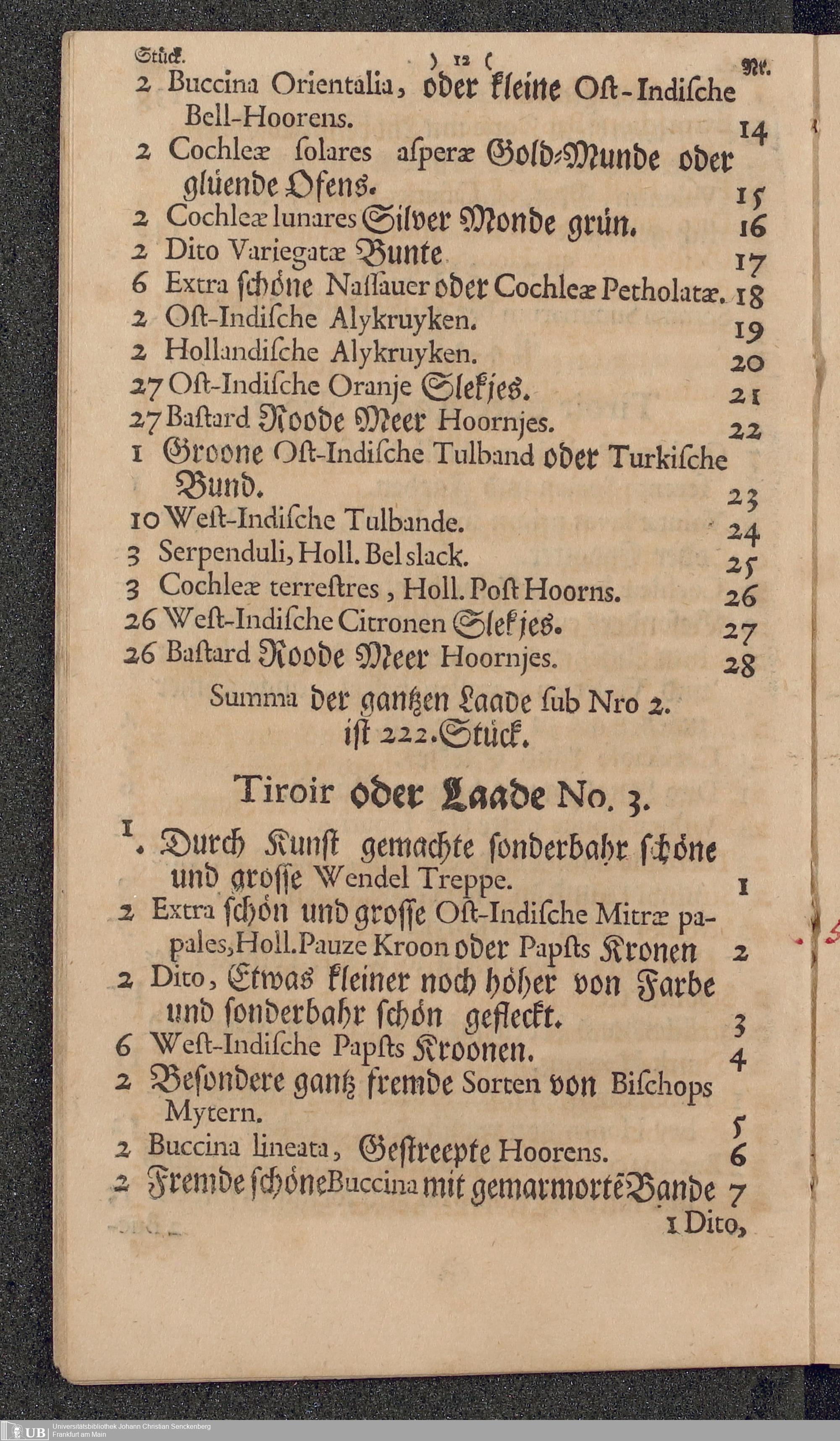 Na 31 Nachlass Johann Christian Senckenberg, 177 - Aufzeichnungen Senckenbergs über das Muschelkabinett Lavillettes