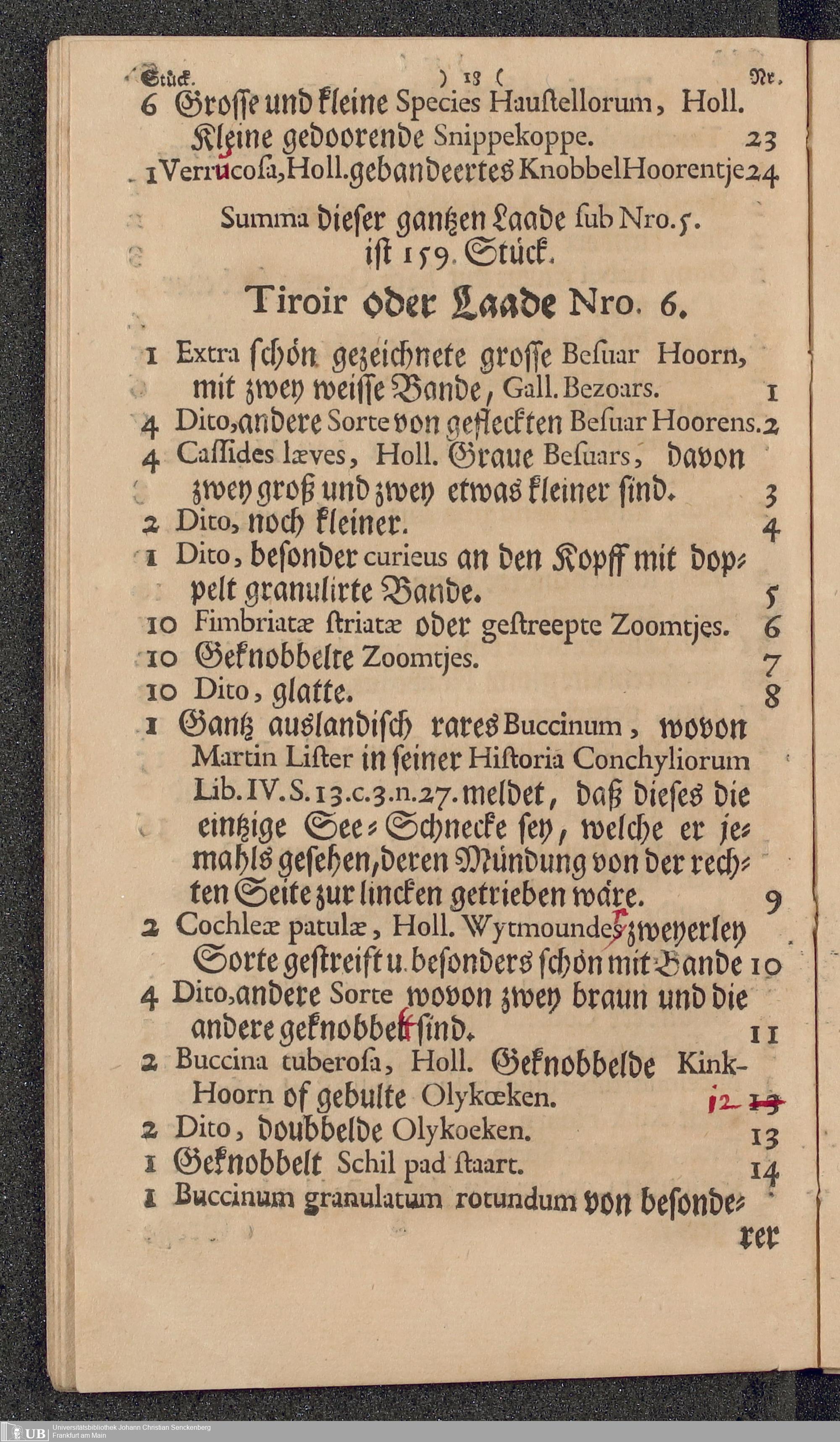 Na 31 Nachlass Johann Christian Senckenberg, 177 - Aufzeichnungen Senckenbergs über das Muschelkabinett Lavillettes (p. I.2.c.95)