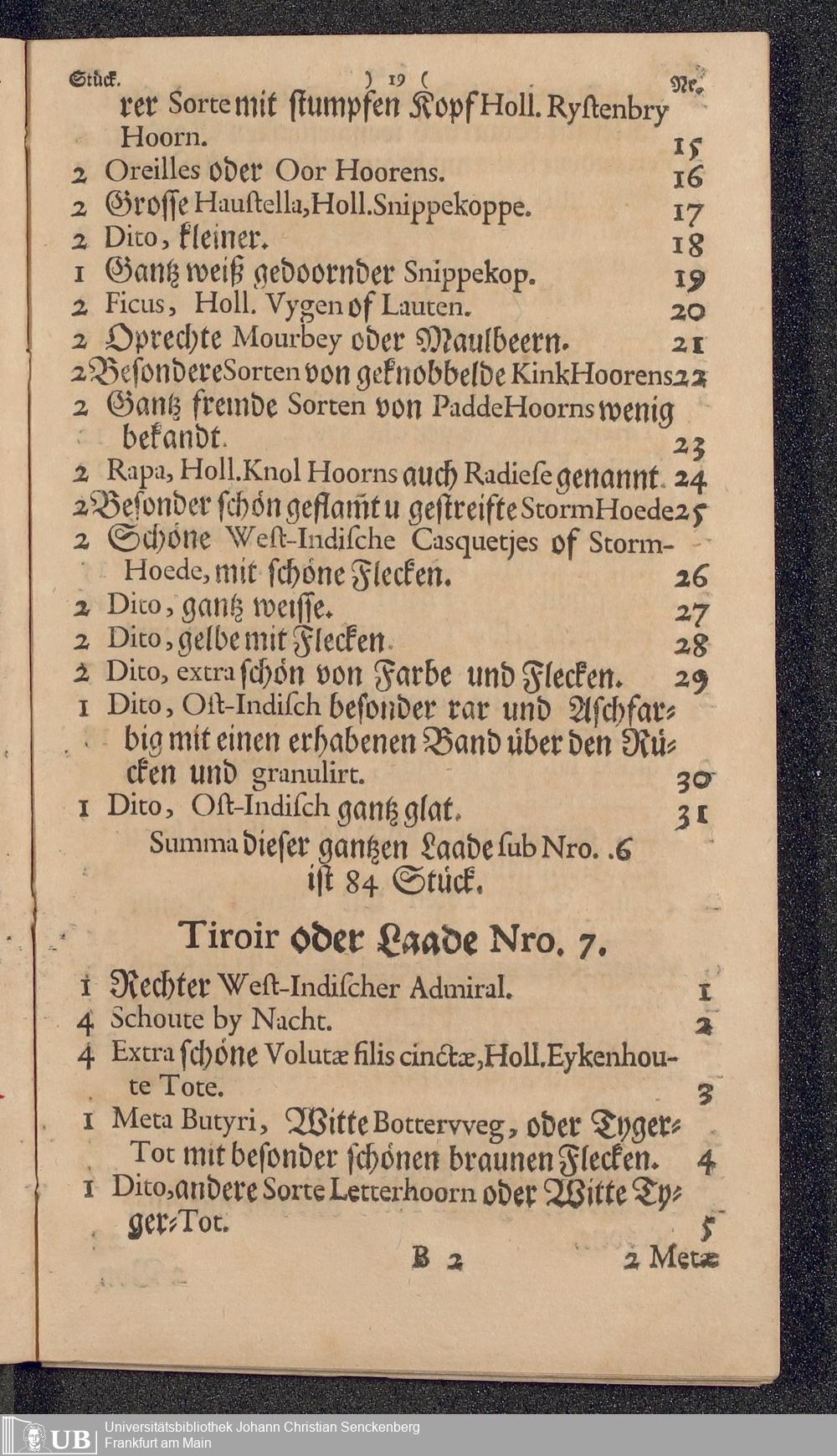 Na 31 Nachlass Johann Christian Senckenberg, 177 - Aufzeichnungen Senckenbergs über das Muschelkabinett Lavillettes