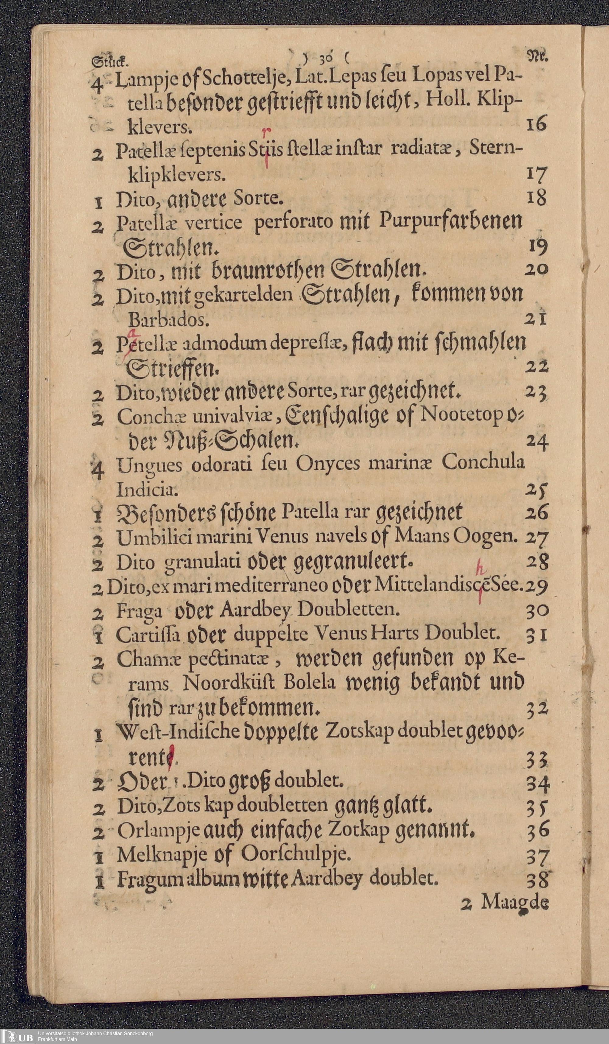 Na 31 Nachlass Johann Christian Senckenberg, 177 - Aufzeichnungen Senckenbergs über das Muschelkabinett Lavillettes (p. I.2.c.95)