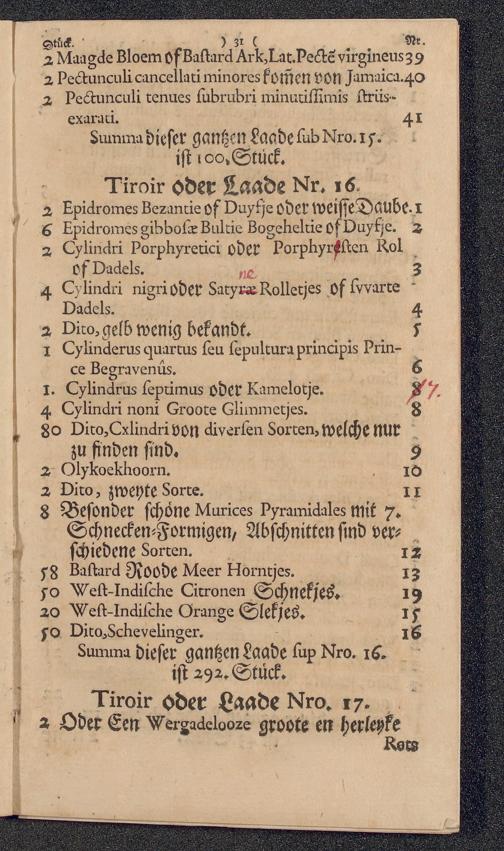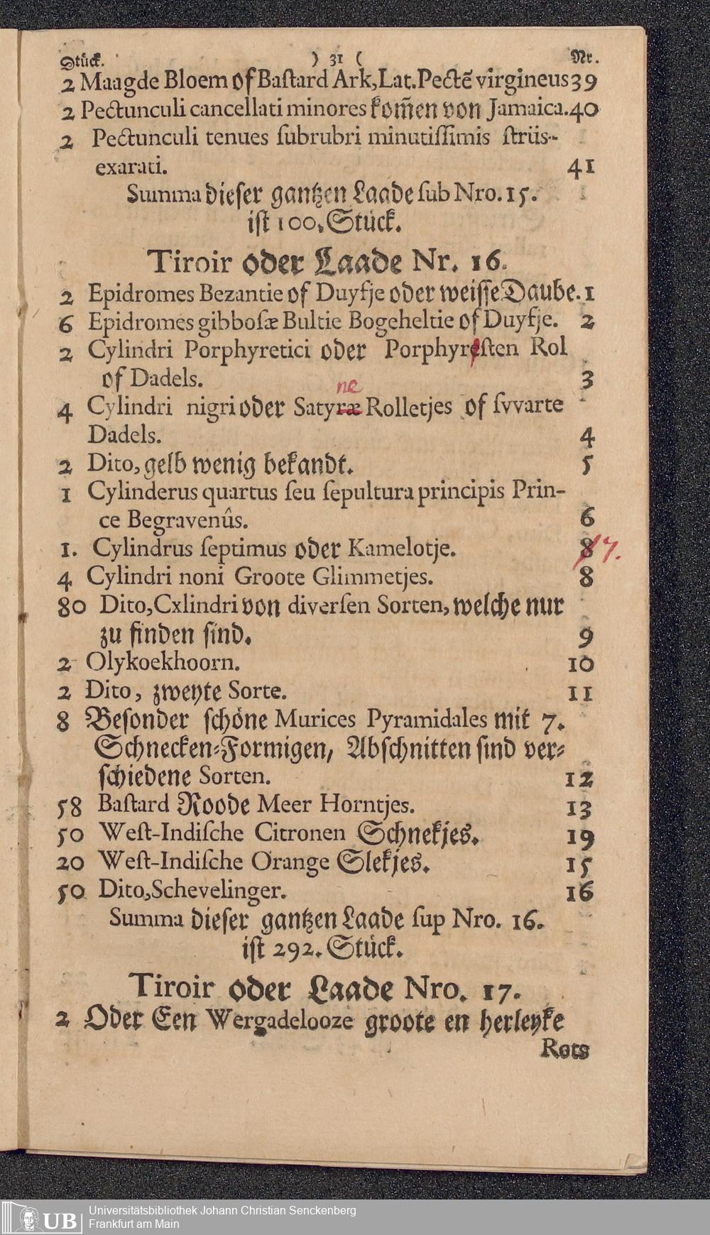 Na 31 Nachlass Johann Christian Senckenberg, 177 - Aufzeichnungen Senckenbergs über das Muschelkabinett Lavillettes (p. I.2.c.95)