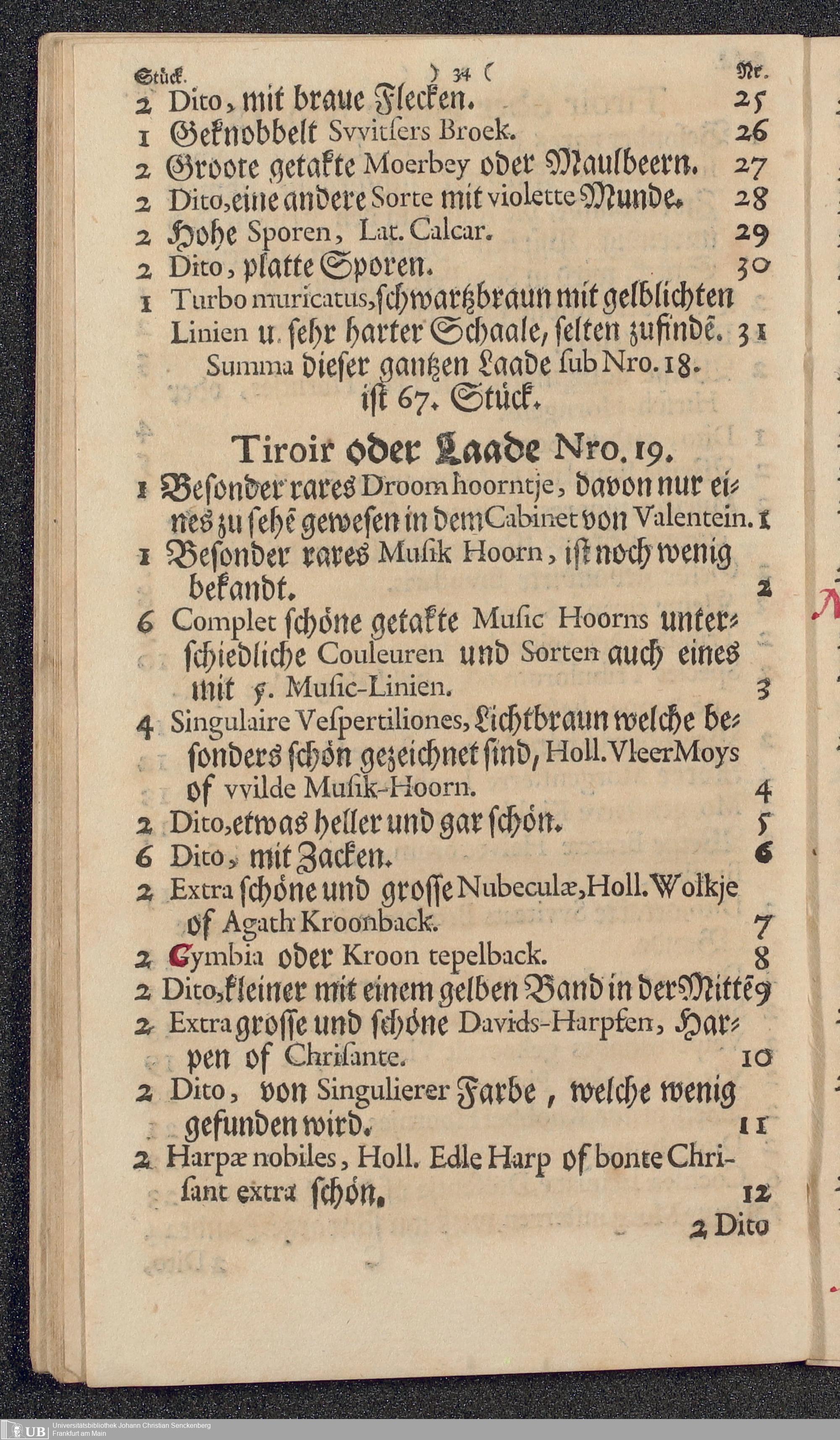 Na 31 Nachlass Johann Christian Senckenberg, 177 - Aufzeichnungen Senckenbergs über das Muschelkabinett Lavillettes (p. I.2.c.95)